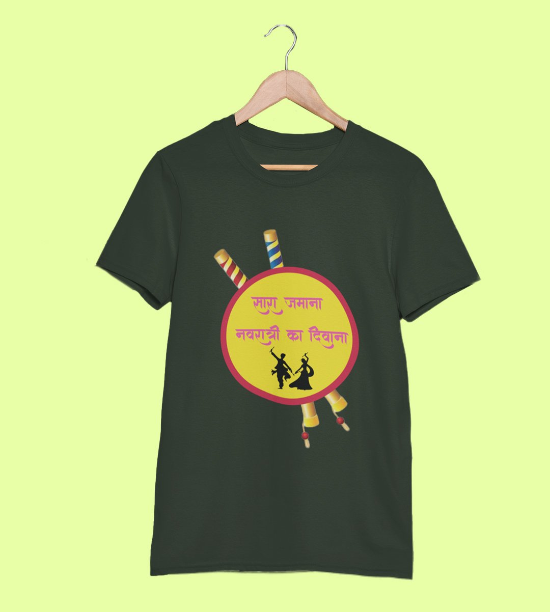 Navratri is a very auspicious festival for hindus. It takes place at the beginning of October and sometimes September. Enjoy the 9 days of festivities with full zeal and make yourself submerged in the love of Maa Durga. Navratri is also known as Durga Puja. And with this Tees, you can shine like a star during this festive season with our navratri themed cotton half sleeved Tshirts. You can pair our t-shirts with trousers and denim of your choice and make it a weekday smart casual or weekend wear. This is durable. This tshirt is smooth and soft which makes you comfortable to wear during all seasons. The printing in it is durable and odourless. It has five sizes, S,M,L,XL,XXL. The Tshirt colour is intact even after repeated washes. It can be kept in your wardrobe and hangers. Please avoid washing mashine to clean this Tee, it may affect the print. Hand wash only. We have brought you many navratri related designs printed on our different colour Tshirts to choose from. Grab it now.