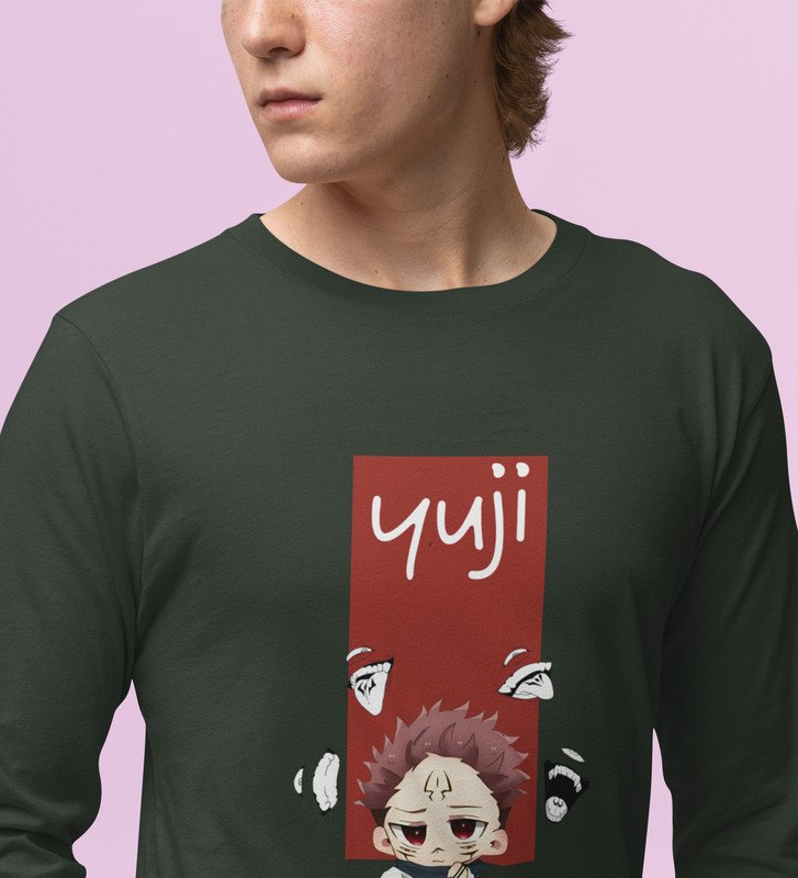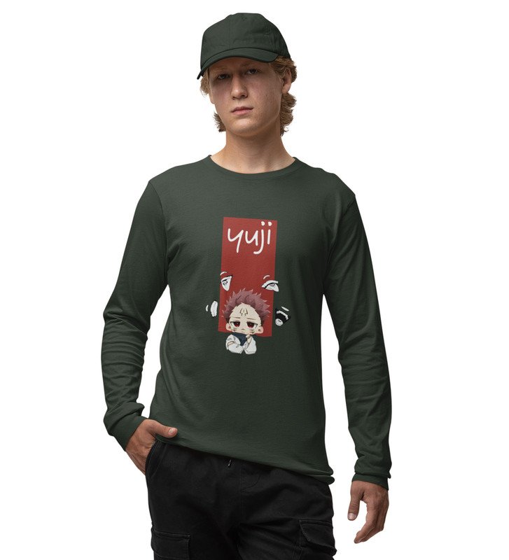 Sarcastic Itadori Cotton Green Printed Full Sleeves Tshirt For Mens and Boys