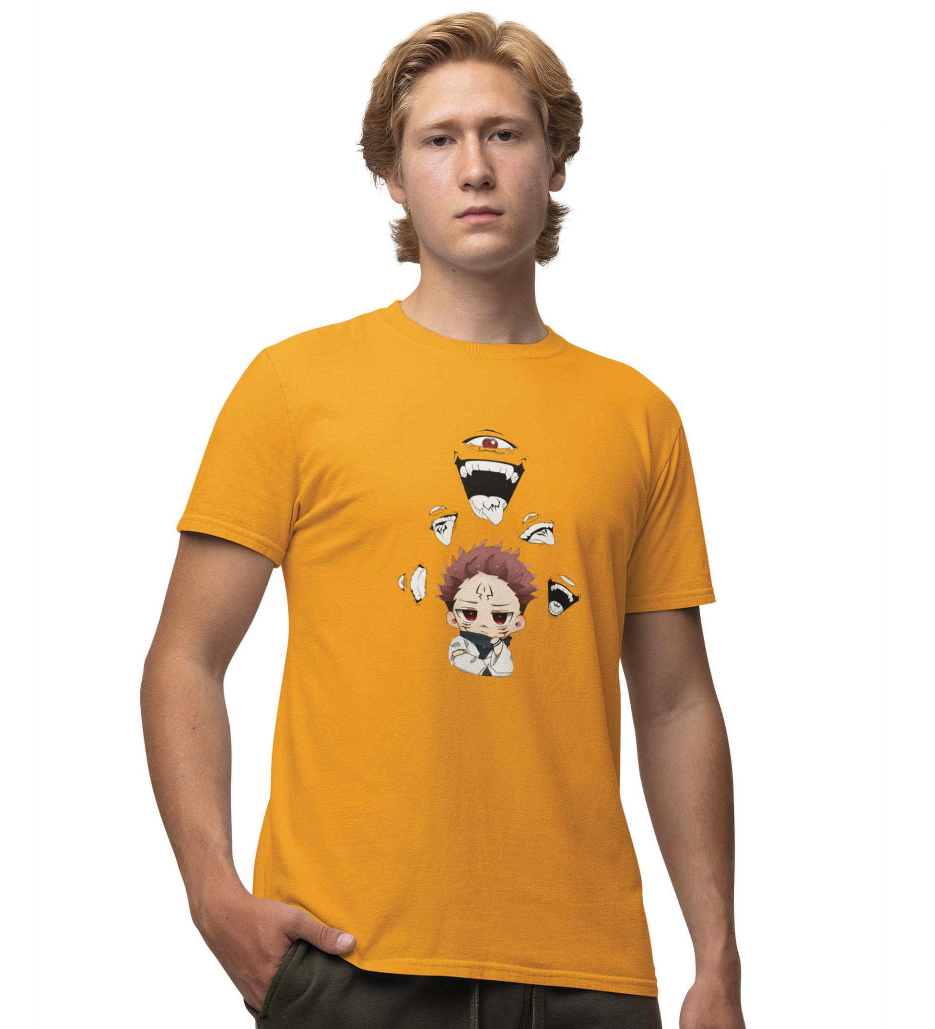 Sarcastic Itadori Cotton Yellow Printed Tshirt For Mens and Boys