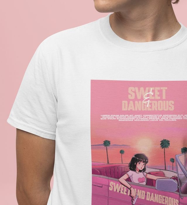 Sassy Sunset: Dangerous in Pink Graphic Printed White T-Shirt
