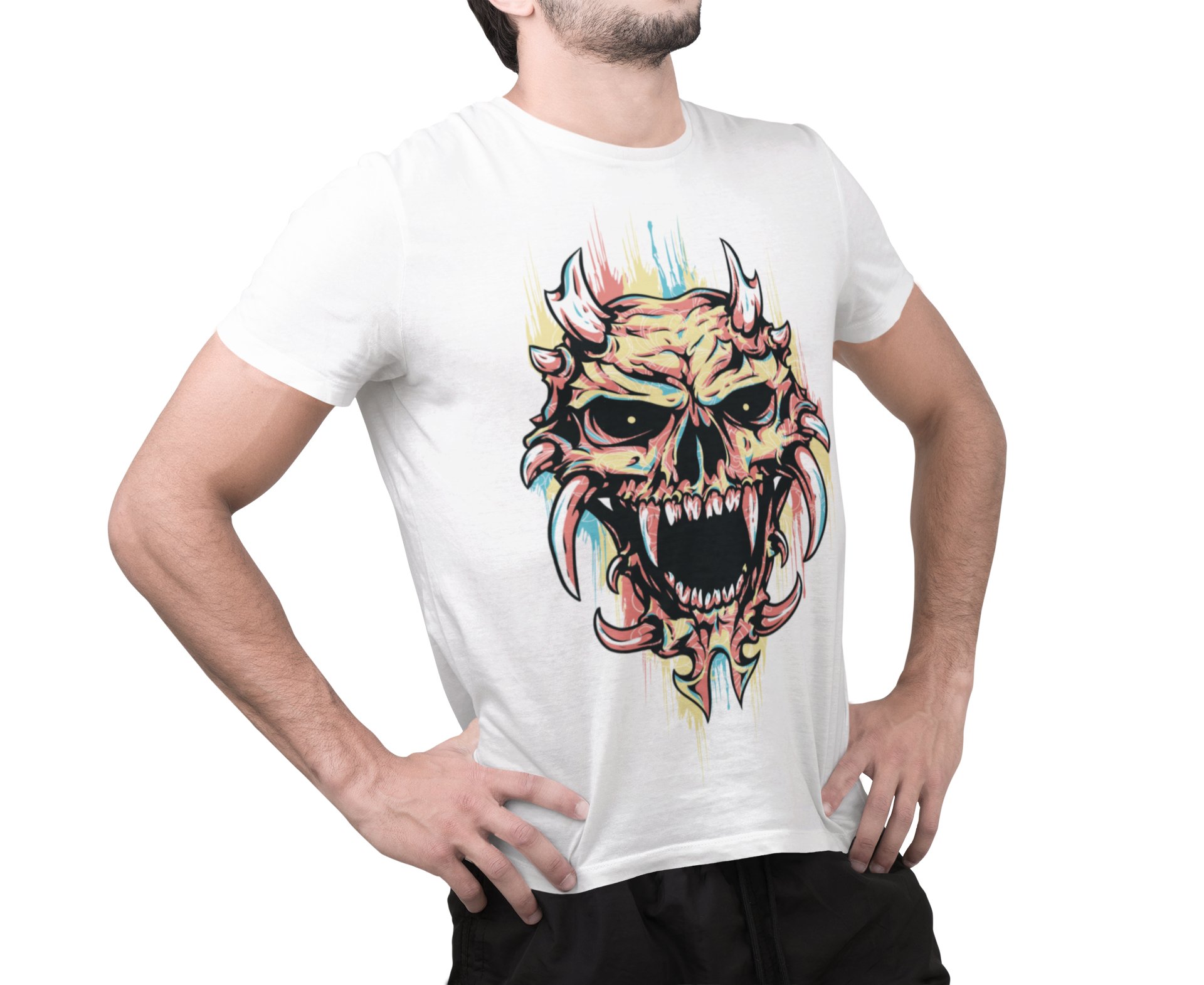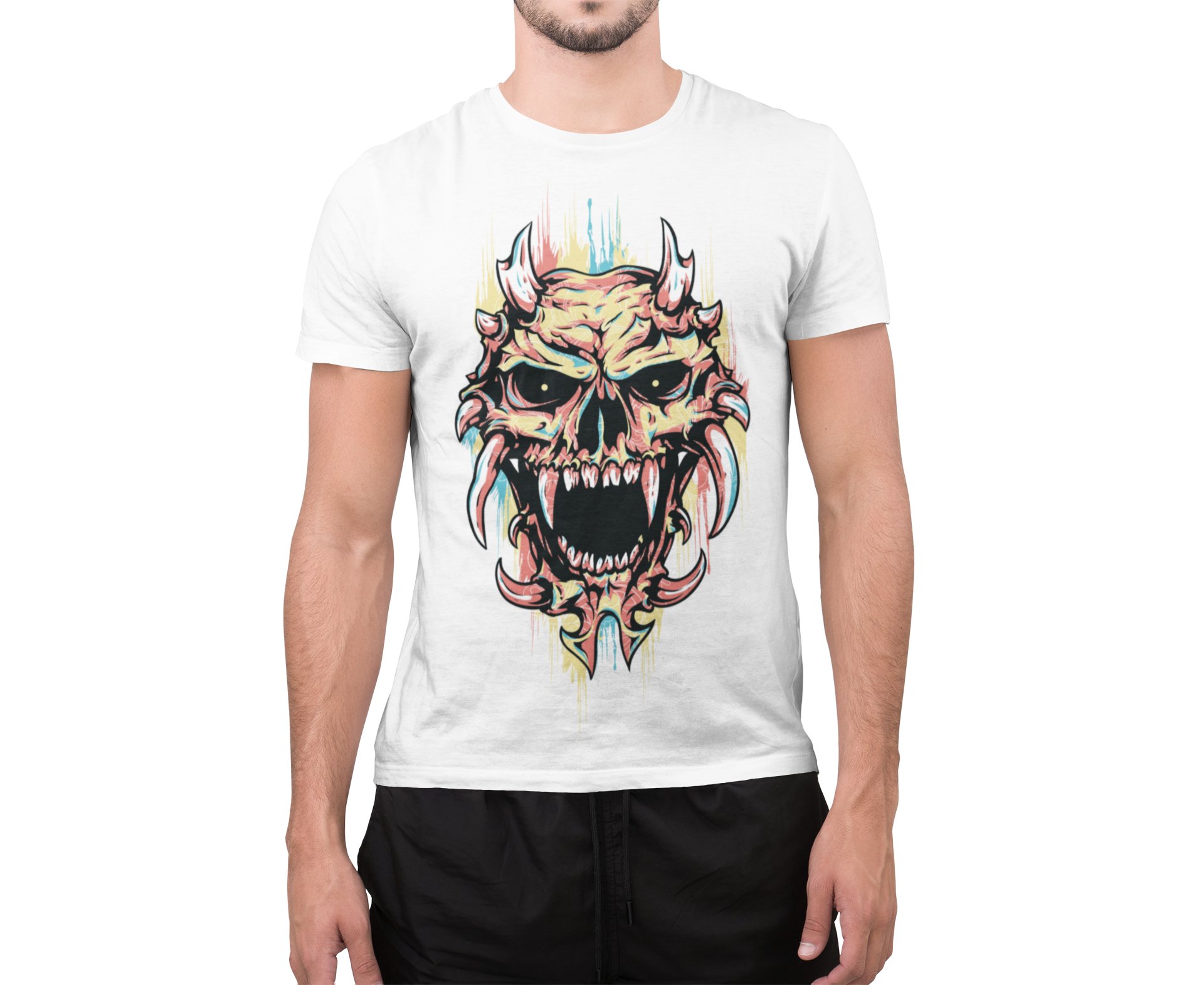 Scary colourful Illustration - White - printed T-shirts - Men's stylish clothing - Cool tees for boysscary