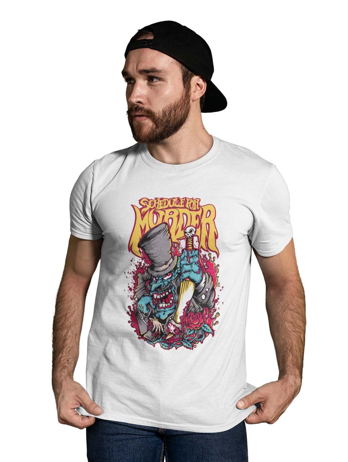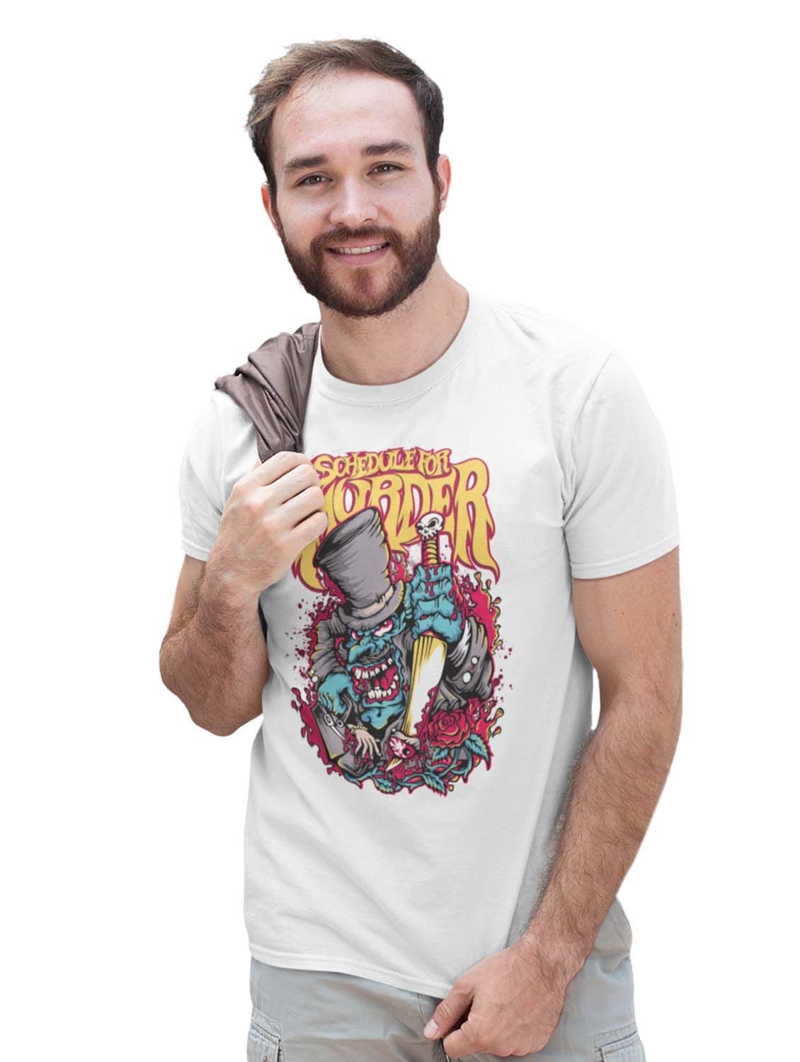 Schedule Murderer White Round Neck Cotton Half Sleeved T-Shirt with Printed Graphics