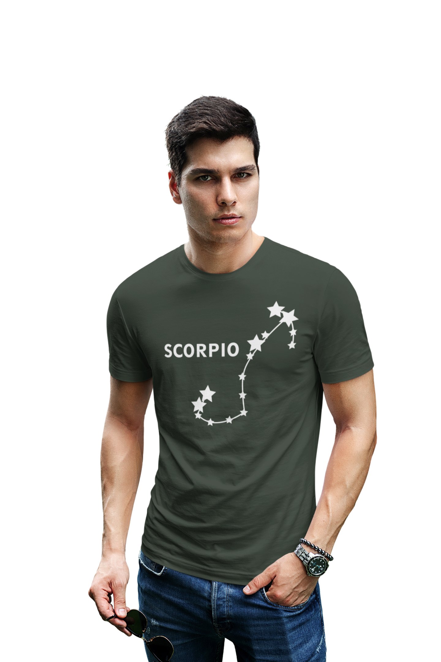 Scorpio stars (BG white) (Green T) - Printed Zodiac Sign Tshirts - Made especially for astrology lovers people
