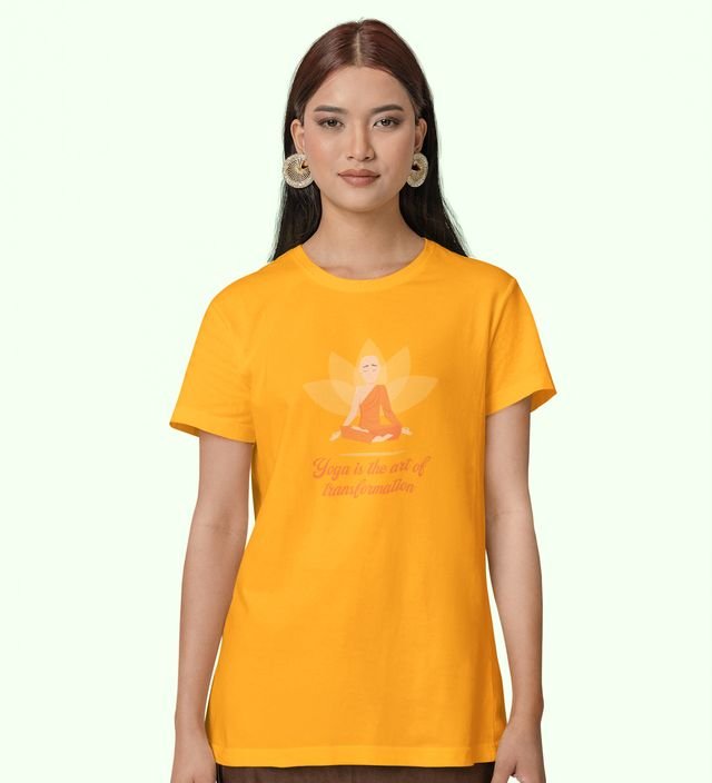 Self Transformation Yellow Round Neck Cotton Half Sleeved Women T-Shirt with Printed Graphics