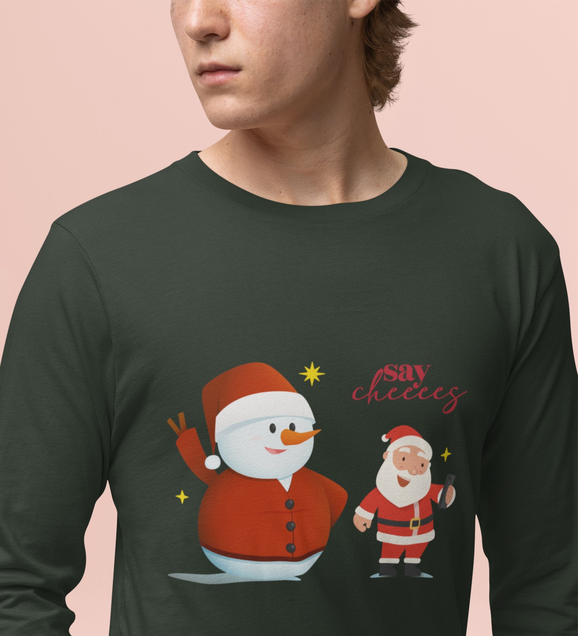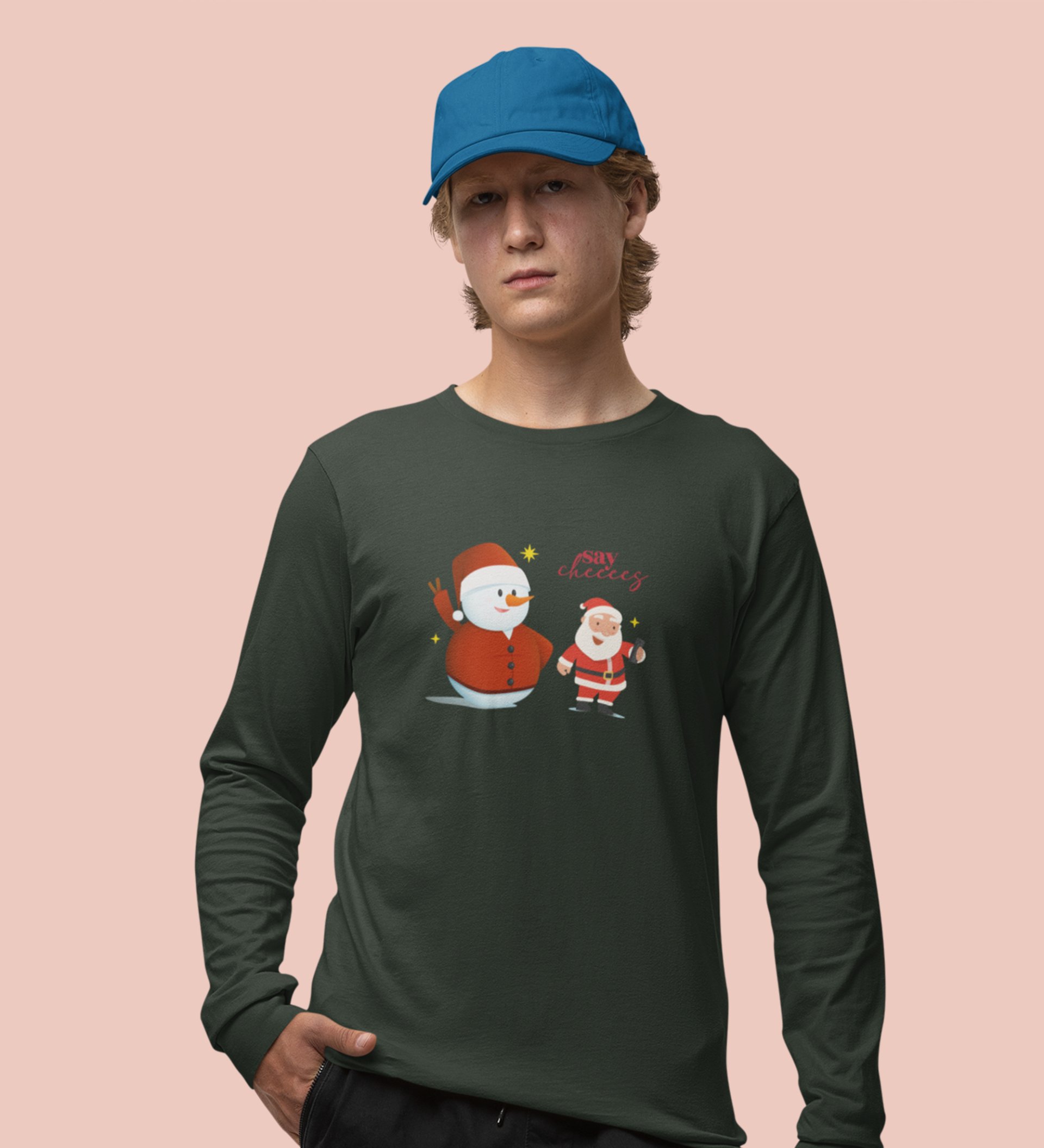 Selfie Santa: Cute DesignerFull Sleeve T-shirt Green Elegant Gift For Kids