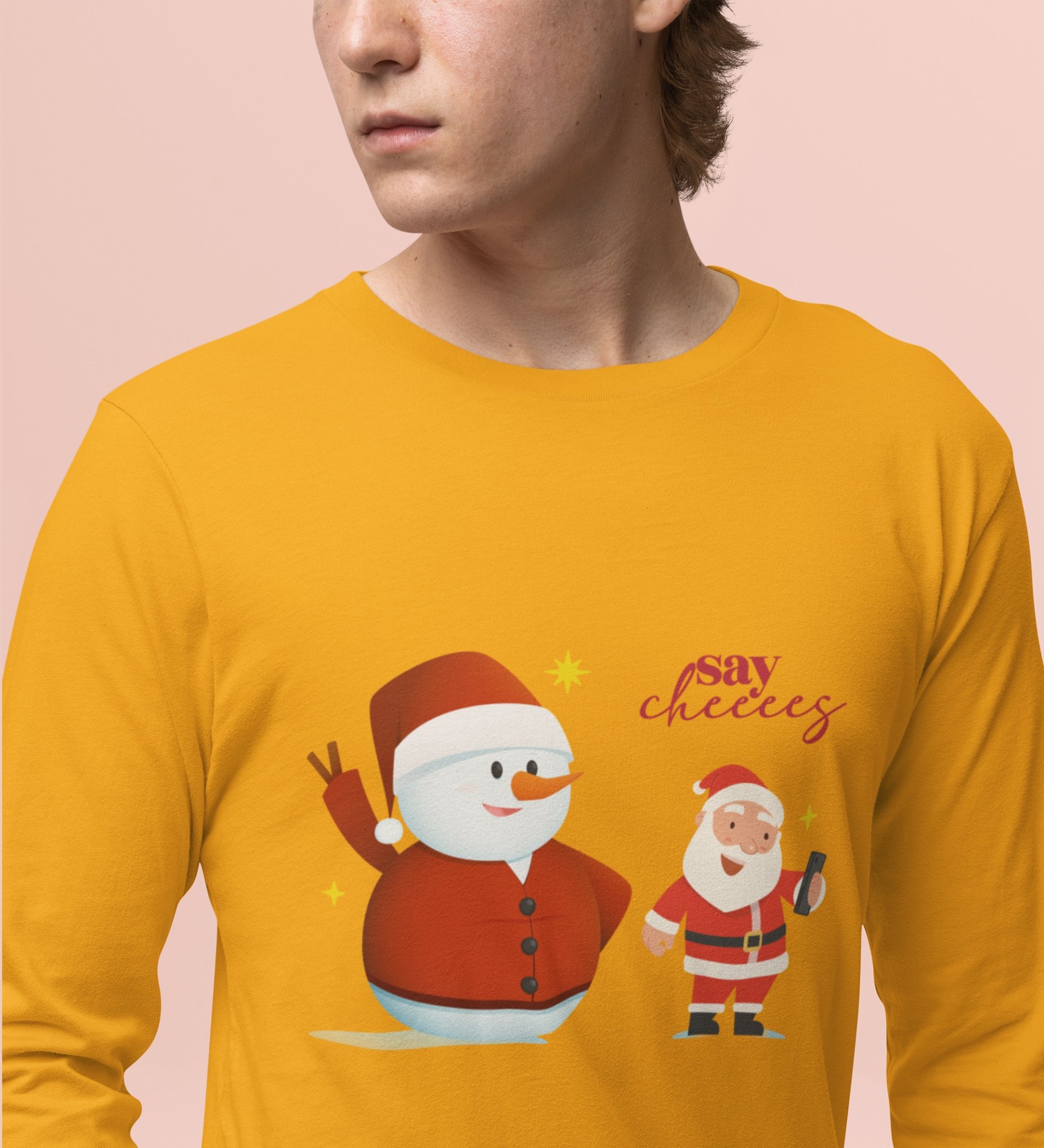 Selfie Santa: Cute DesignerFull Sleeve T-shirt Yellow Elegant Gift For Kids
