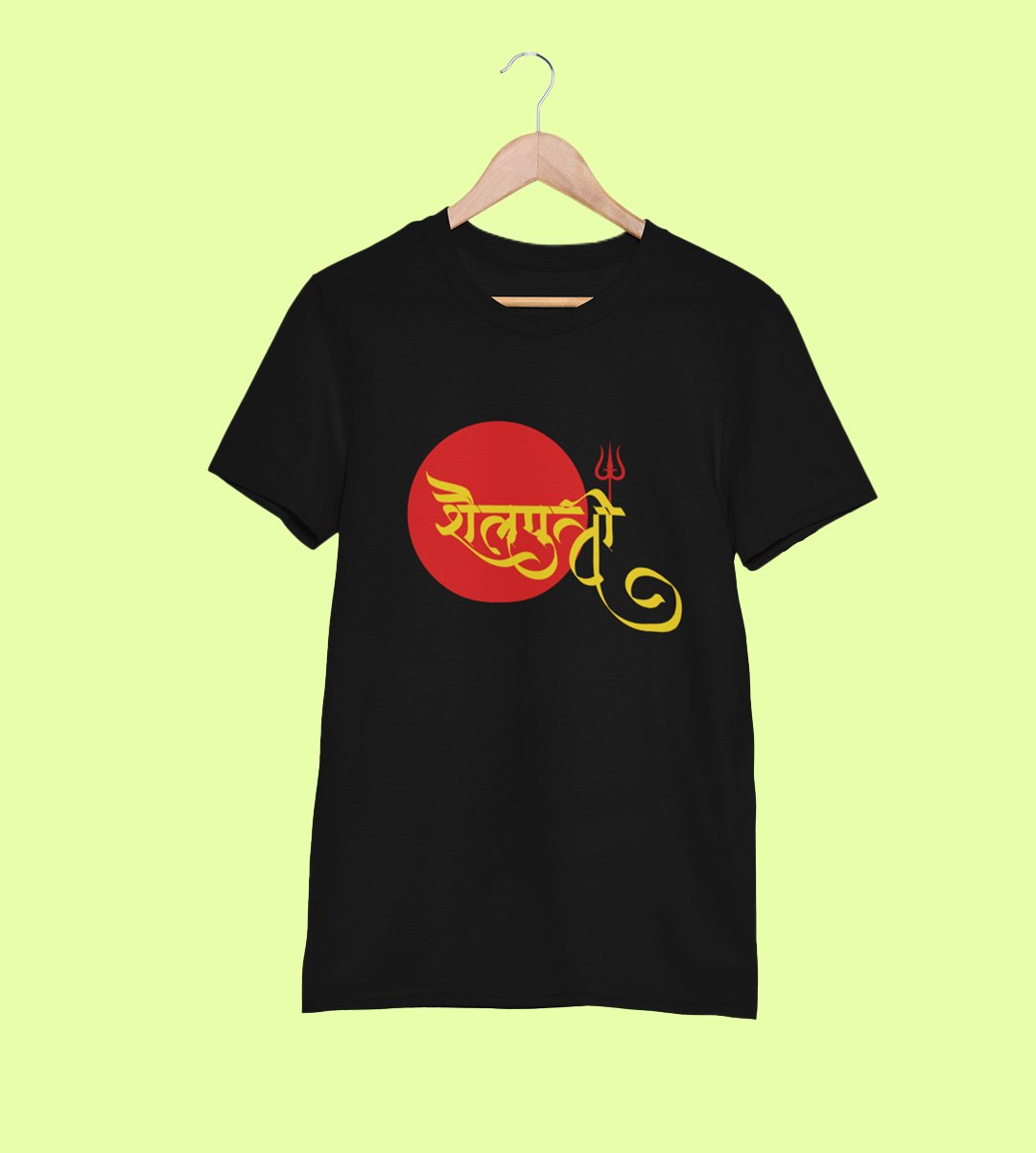 Shailaputri printed unisex adults round neck cotton half-sleeve black tshirt specially for Navratri festival/ Durga puja