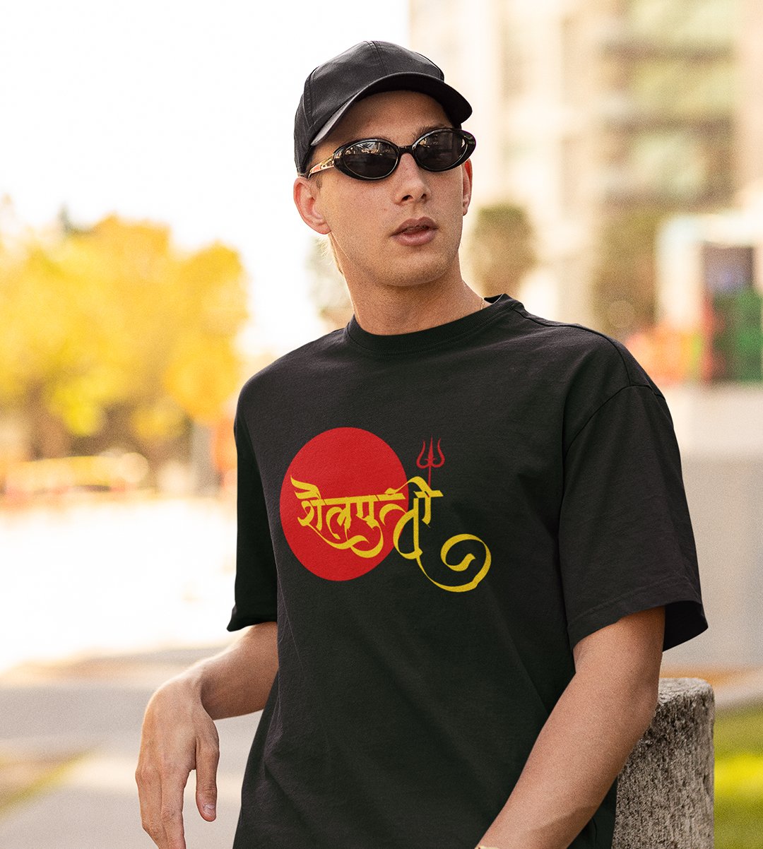 Shailaputri text printed unisex adults round neck cotton half-sleeve green tshirt specially for Navratri festival/ Durga puja