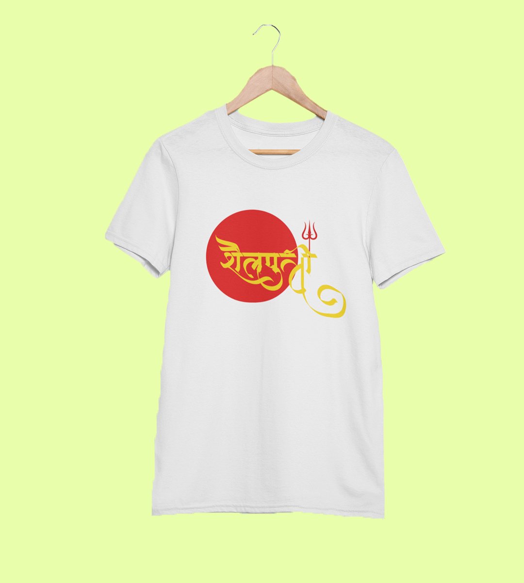 Shailputri text printed unisex adults round neck cotton half-sleeve white tshirt specially for Navratri festival/ Durga puja