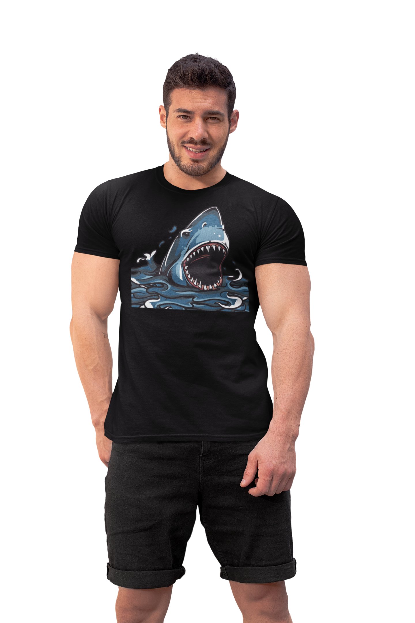 Shark attacking - Black - printed T-shirts -Abstract Funny thoughtful creative illustrations - Men's stylish clothing - Cool tees for boys