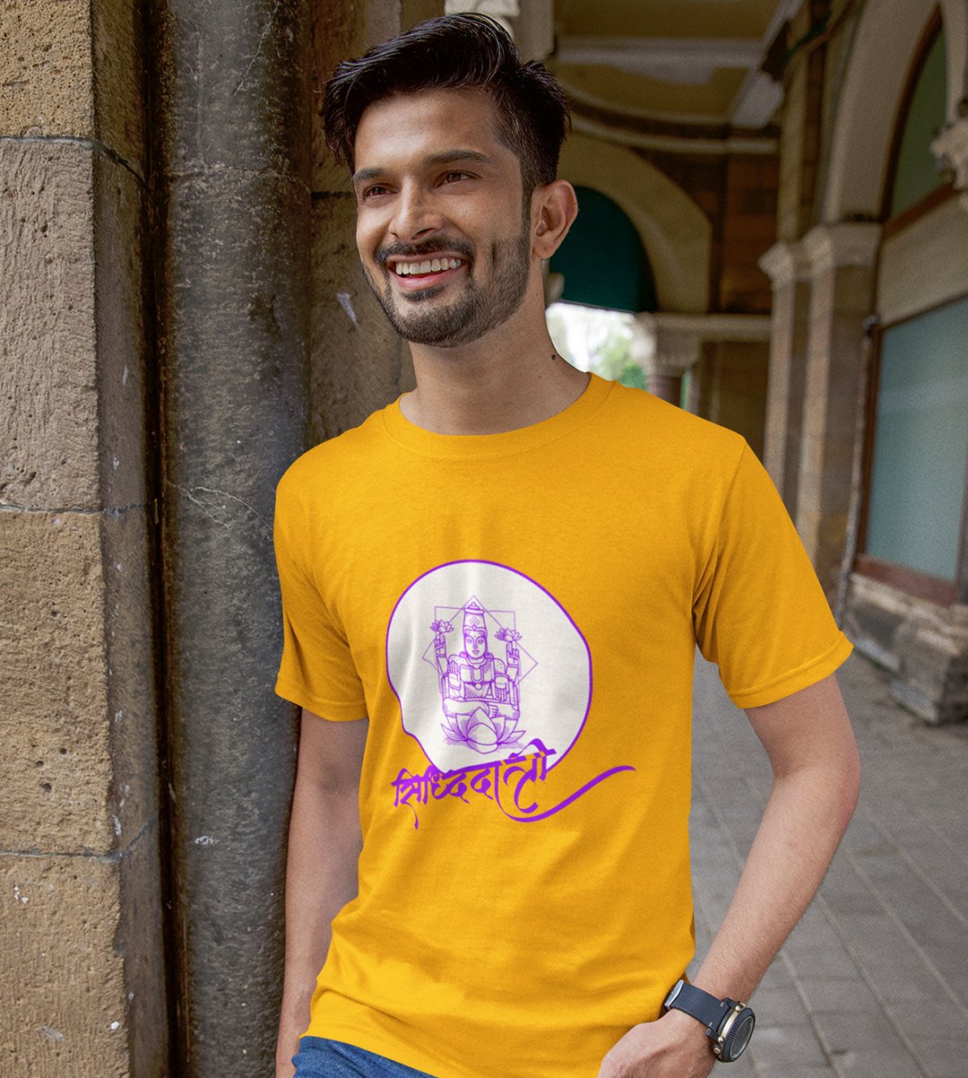Shididhatri text printed unisex adults round neck cotton half-sleeve yellow tshirt specially for Navratri festival/ Durga puja
