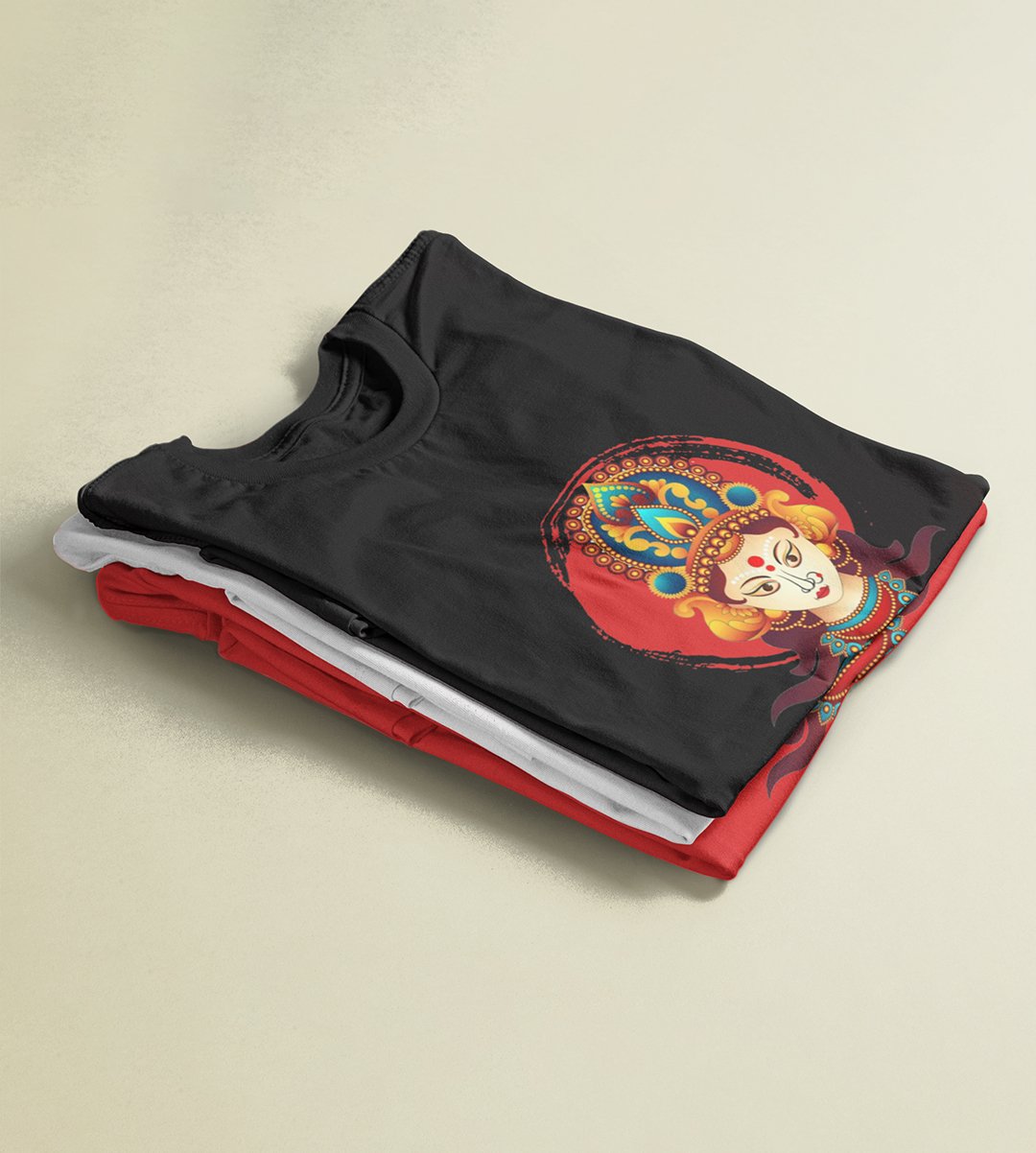 Navratri is a very auspicious festival for hindus. It takes place at the beginning of October and sometimes September. Enjoy the 9 days of festivities with full zeal and make yourself submerged in the love of Maa Durga. Navratri is also known as Durga Puja. And with this Tees, you can shine like a star during this festive season with our navratri themed cotton half sleeved Tshirts. You can pair our t-shirts with trousers and denim of your choice and make it a weekday smart casual or weekend wear. This is durable. This tshirt is smooth and soft which makes you comfortable to wear during all seasons. The printing in it is durable and odourless. It has five sizes, S,M,L,XL,XXL. The Tshirt colour is intact even after repeated washes. It can be kept in your wardrobe and hangers. Please avoid washing mashine to clean this Tee, it may affect the print. Hand wash only. We have brought you many navratri related designs printed on our different colour Tshirts to choose from. Grab it now.