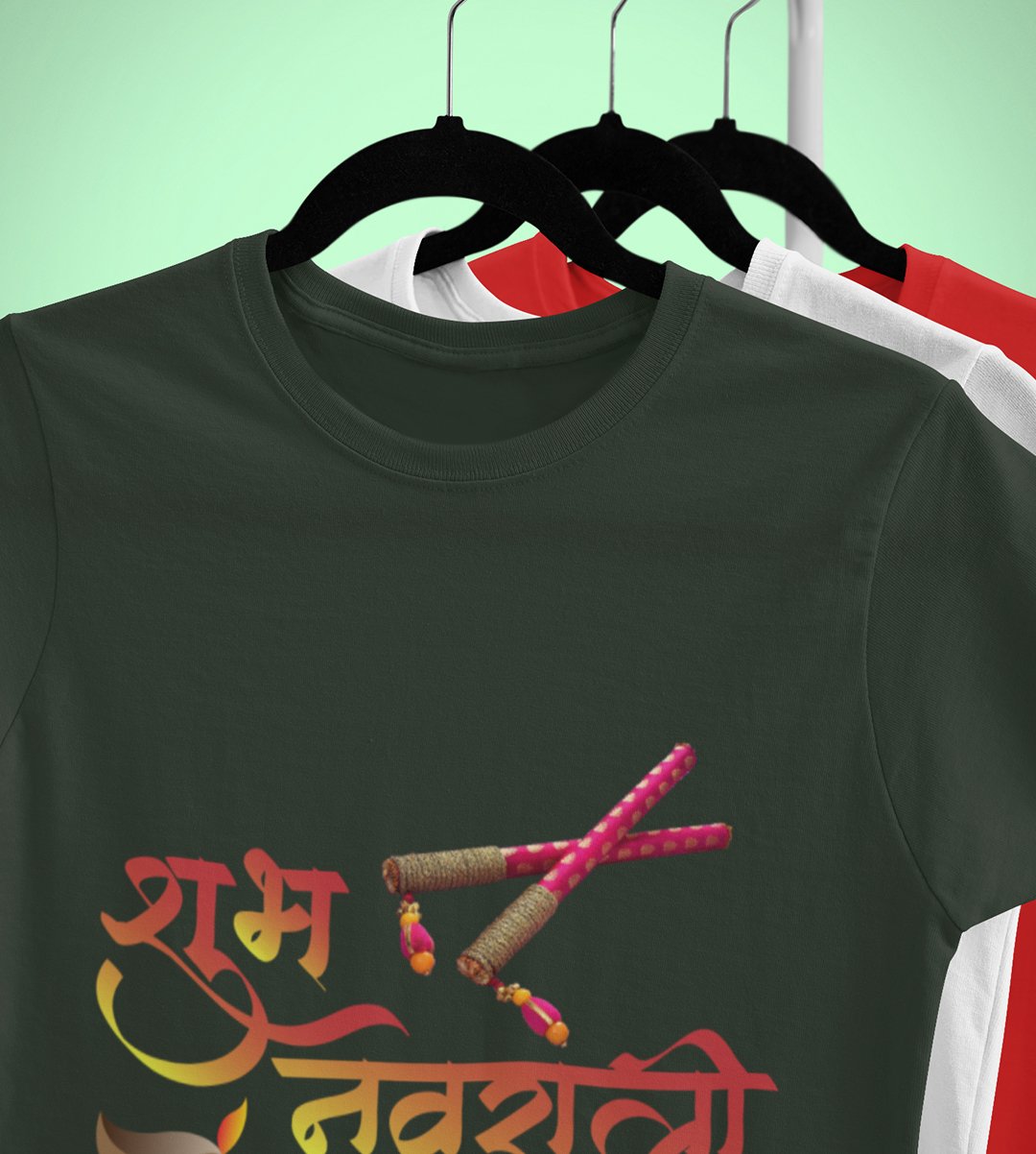 Shubh Navratri printed unisex adults round neck cotton half-sleeve green tshirt specially for Navratri festival/ Durga puja
