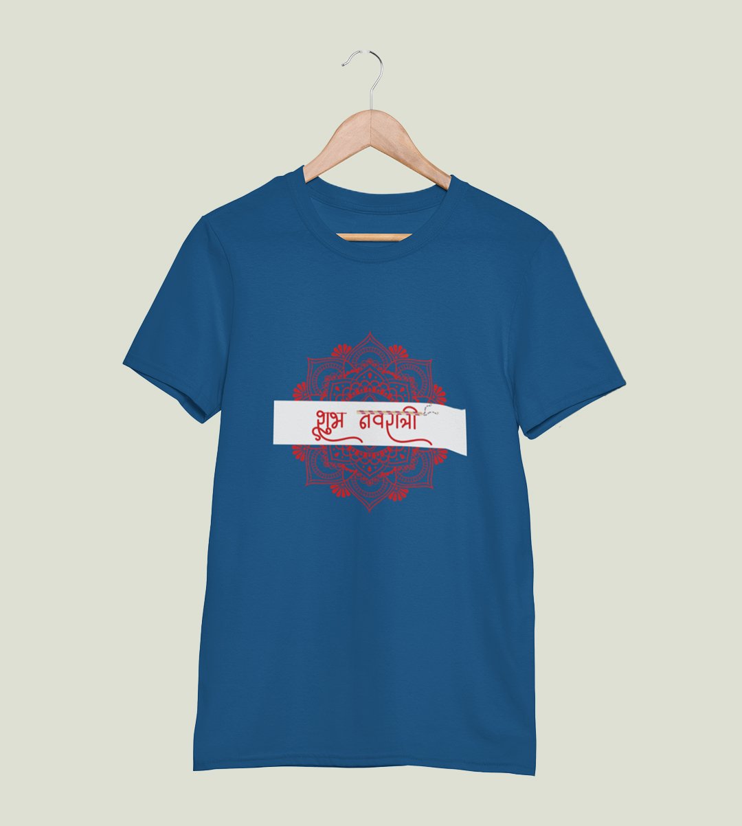 Navratri is a very auspicious festival for hindus. It takes place at the beginning of October and sometimes September. Enjoy the 9 days of festivities with full zeal and make yourself submerged in the love of Maa Durga. Navratri is also known as Durga Puja. And with this Tees, you can shine like a star during this festive season with our navratri themed cotton half sleeved Tshirts. You can pair our t-shirts with trousers and denim of your choice and make it a weekday smart casual or weekend wear. This is durable. This tshirt is smooth and soft which makes you comfortable to wear during all seasons. The printing in it is durable and odourless. It has five sizes, S,M,L,XL,XXL. The Tshirt colour is intact even after repeated washes. It can be kept in your wardrobe and hangers. Please avoid washing mashine to clean this Tee, it may affect the print. Hand wash only. We have brought you many navratri related designs printed on our different colour Tshirts to choose from. Grab it now.
