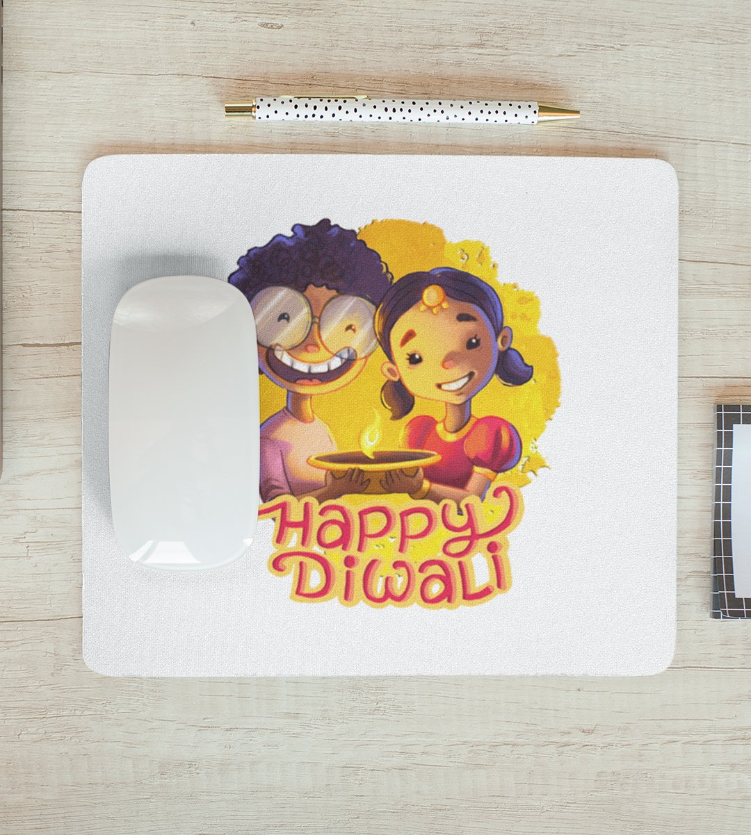 Sibling Love Diwali Mouse Pad - Happy Diwali, Brother & Sister Bond
