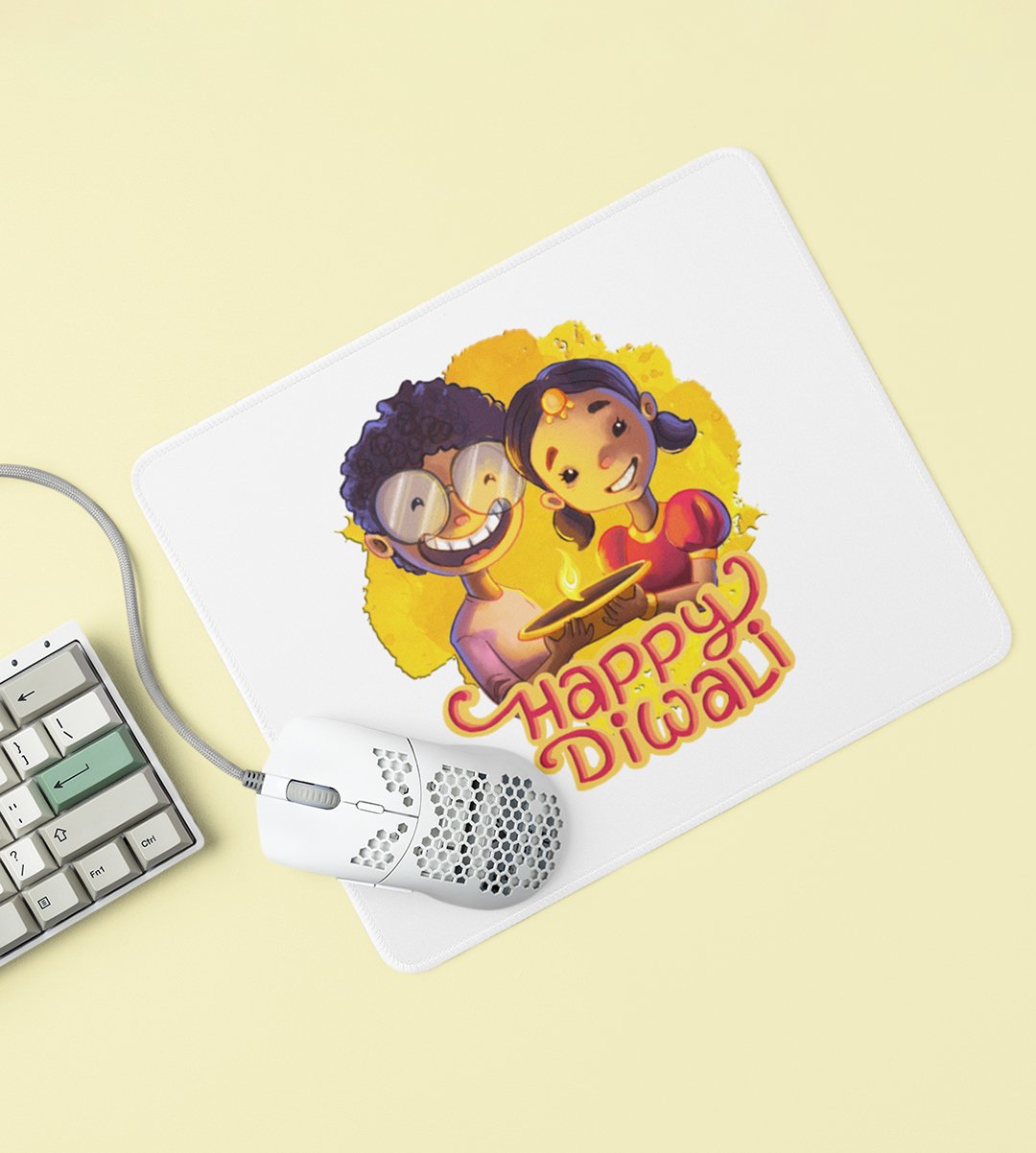 Celebrate the unique bond between siblings during Diwali with our Sibling Love Diwali Mouse Pad. It's a heartwarming depiction of brother and sister love.