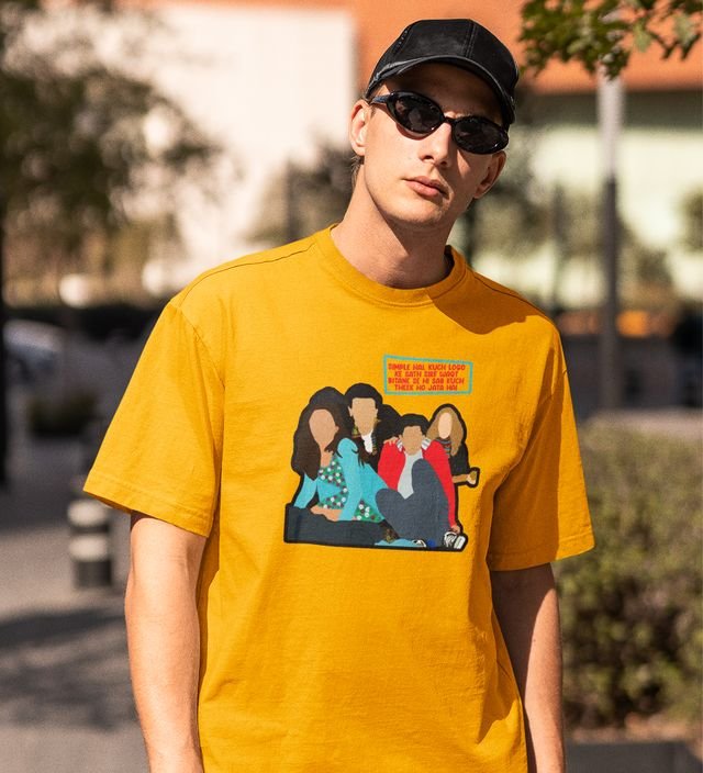 Simple Hai Yellow Round Neck Cotton Half Sleeved Men T-Shirt with Printed Graphics