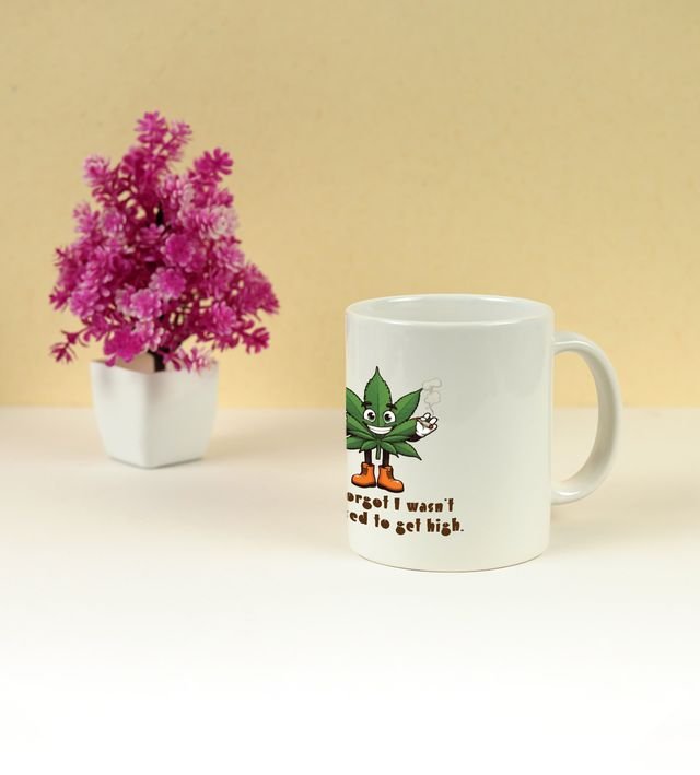 Start your day with a burst of vibrant energy! This printed coffee mug features a psychedelic leaf artwork surrounded by colorful flame-like patterns