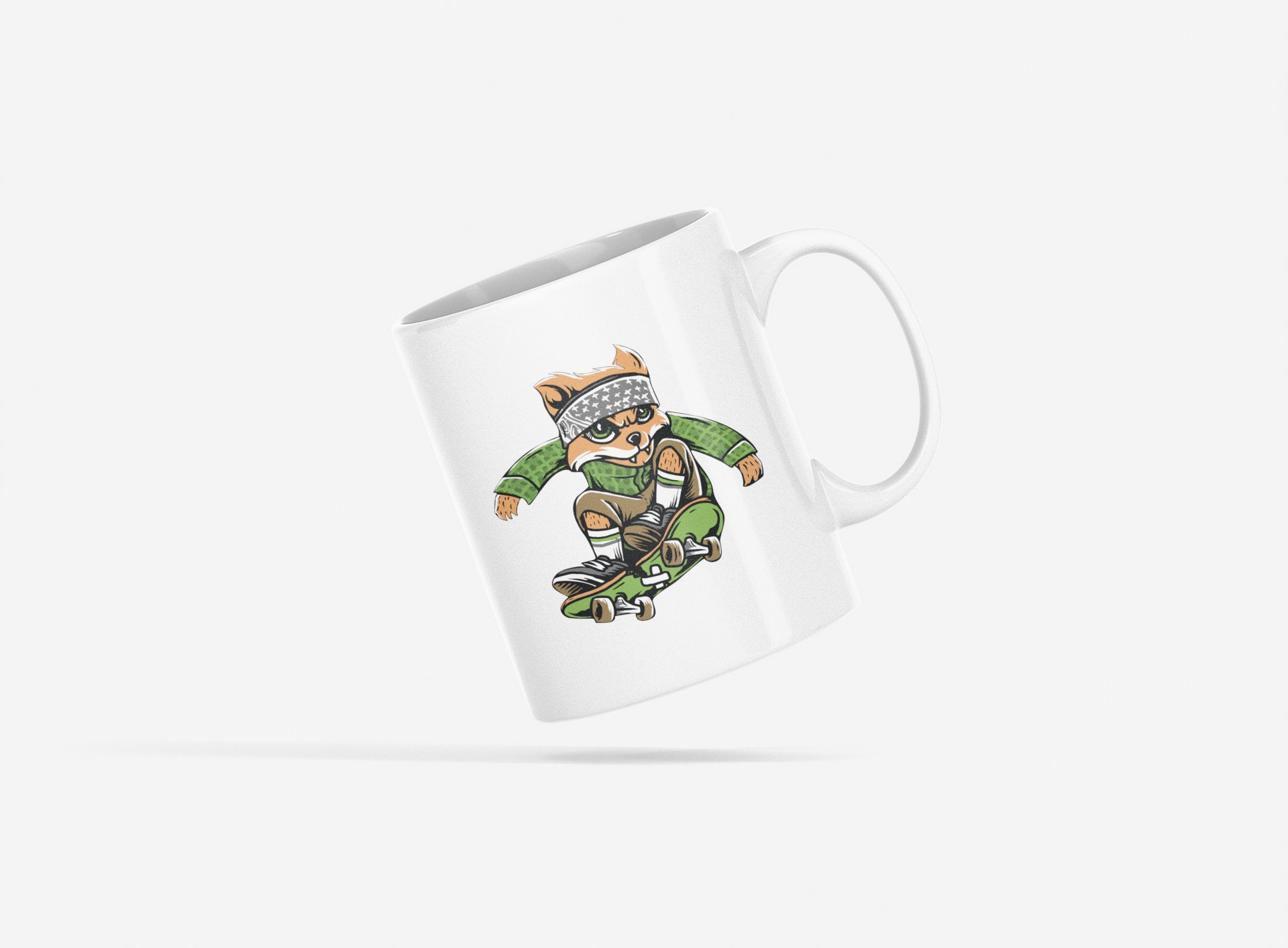 Skate fox - animation themed printed ceramic white coffee and tea mugs/ cups for animation lovers