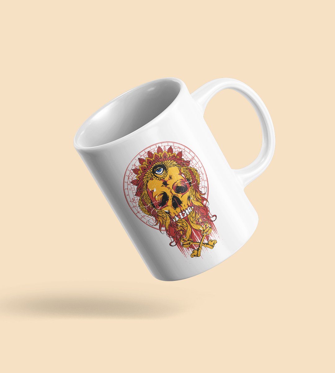 Skull mani (BG Yellow) - animation themed printed ceramic white coffee and tea mugs/ cups for animation lovers