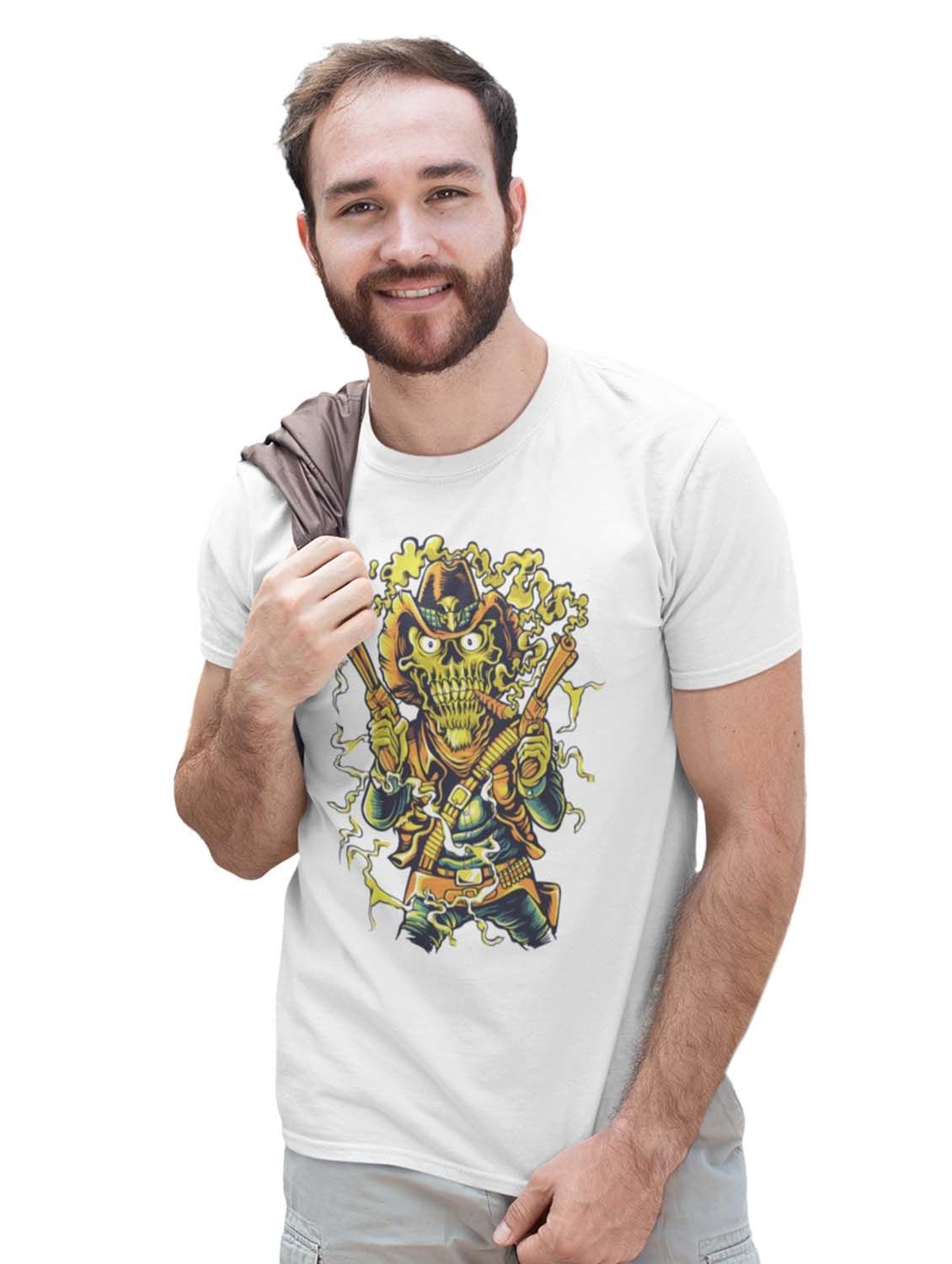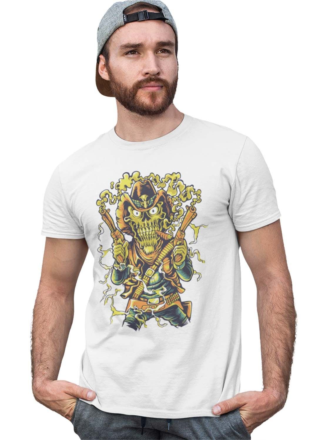 The Cowboy White Round Neck Cotton Half Sleeved T-Shirt with Printed Graphics