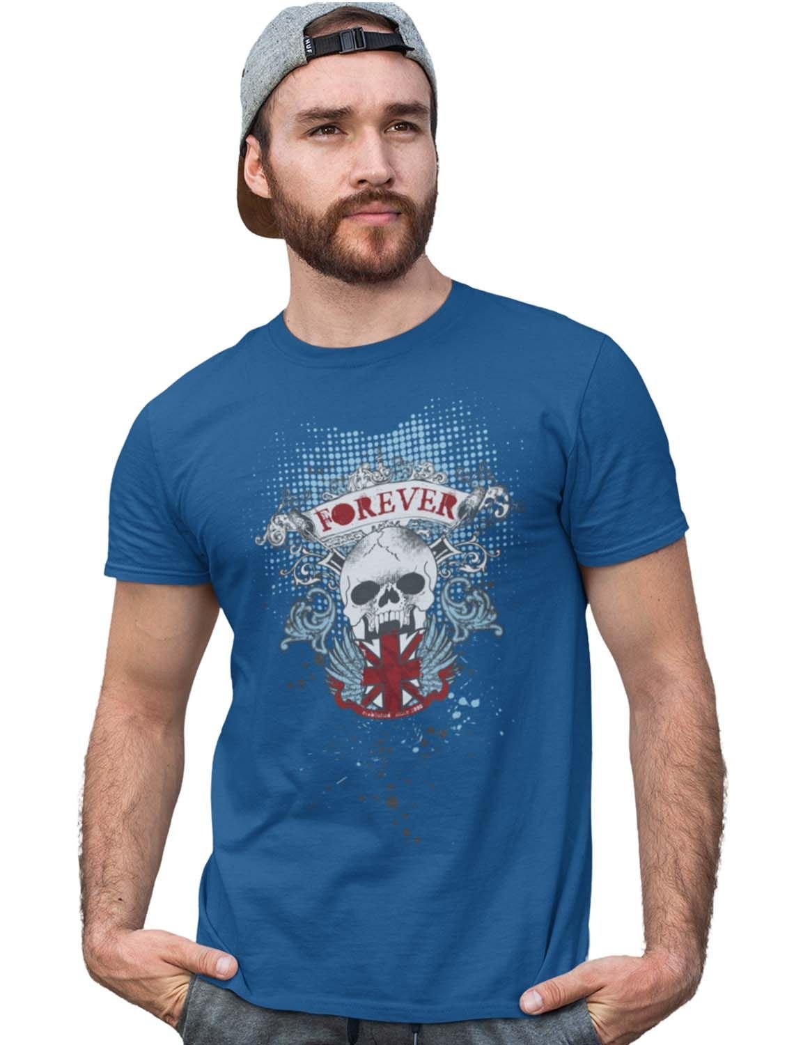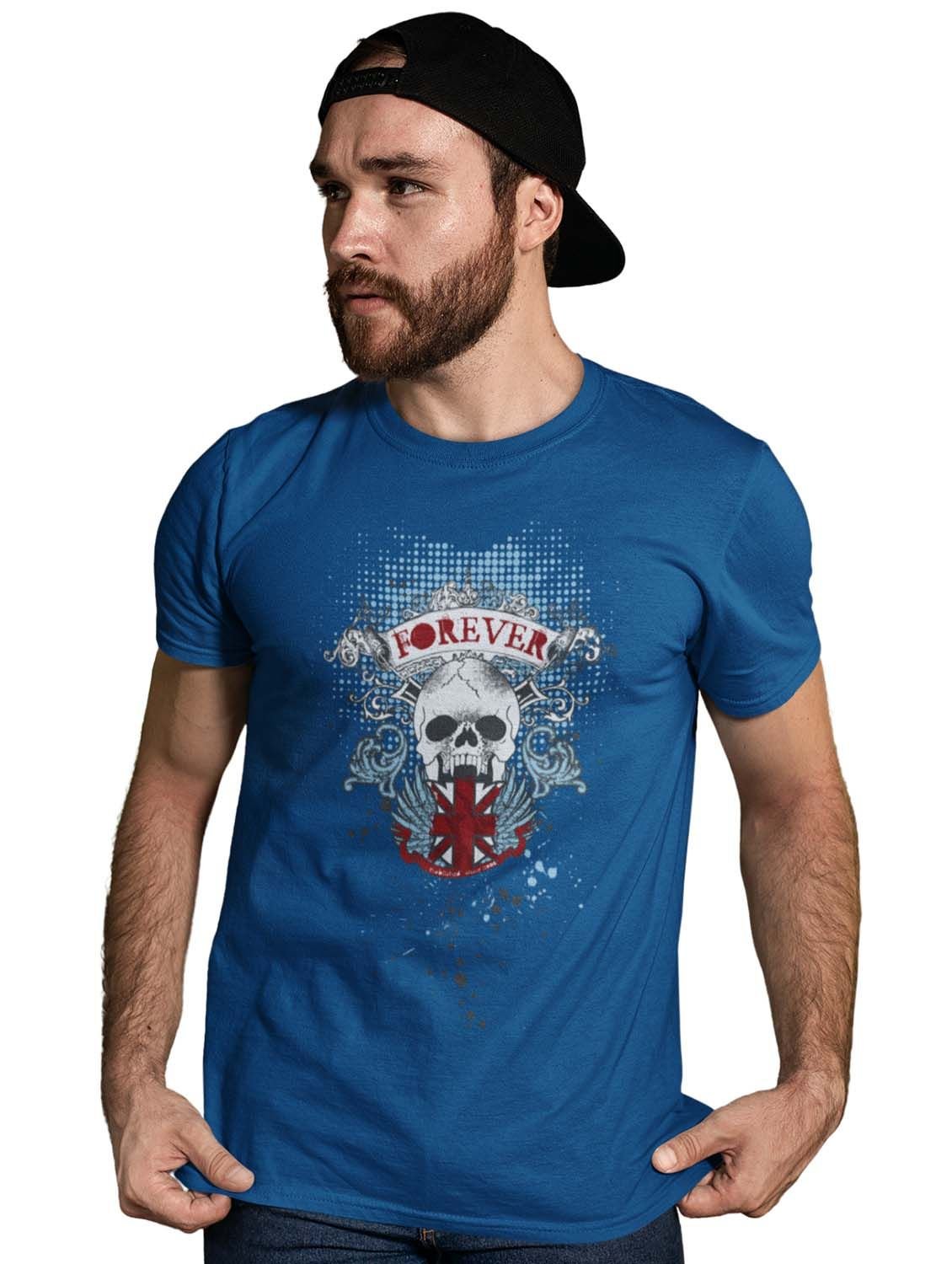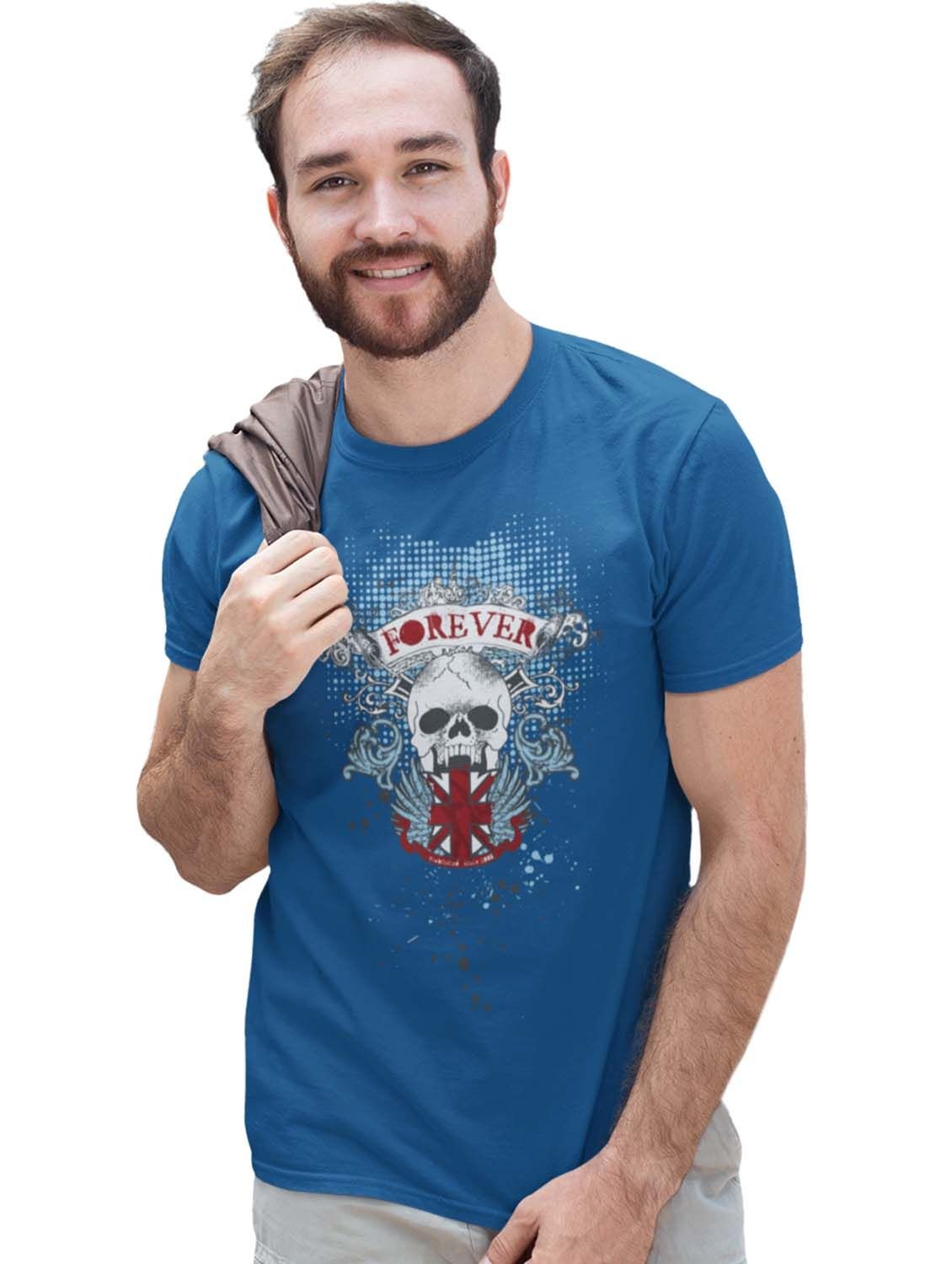 Forever Blue Round Neck Cotton Half Sleeved T-Shirt with Printed Graphics