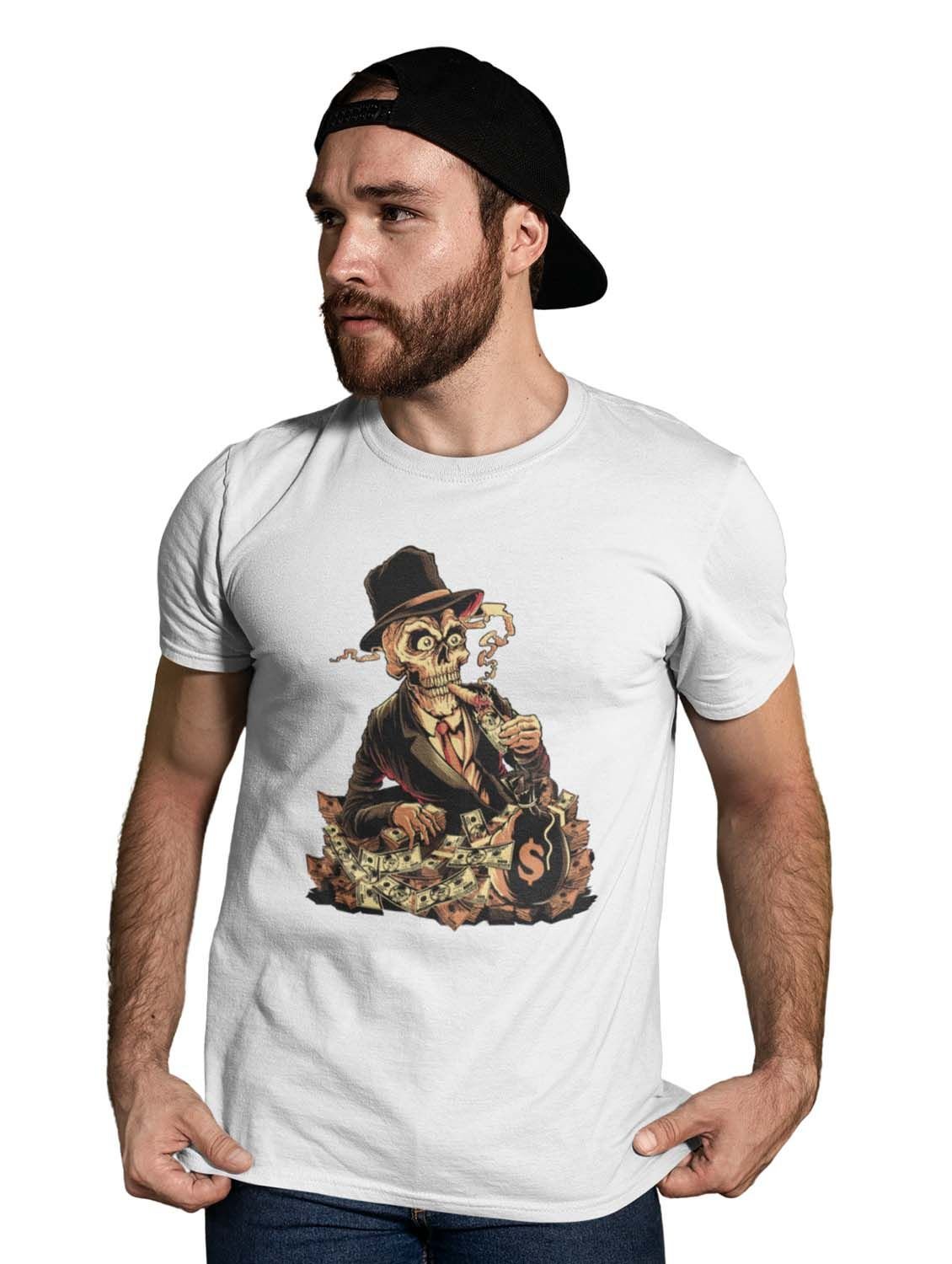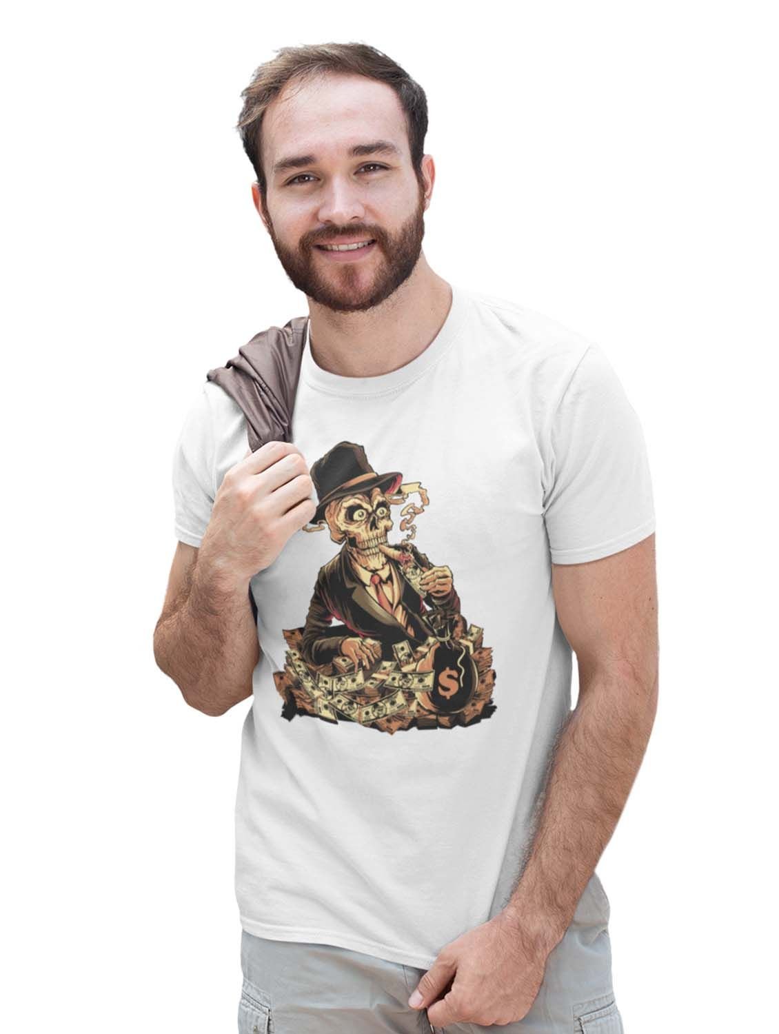 Rich Skull White Round Neck Cotton Half Sleeved T-Shirt with Printed Graphics