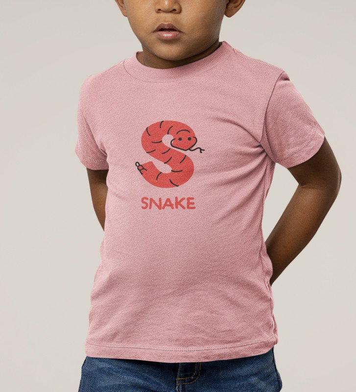 Slippery Snake, Boys Printed Crew Neck Tshirt (Baby pink)