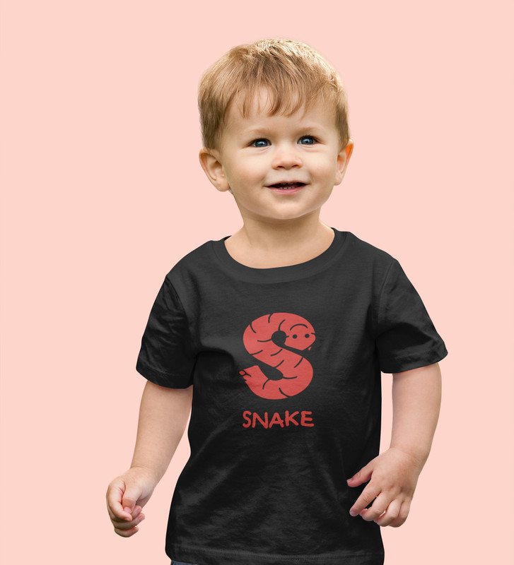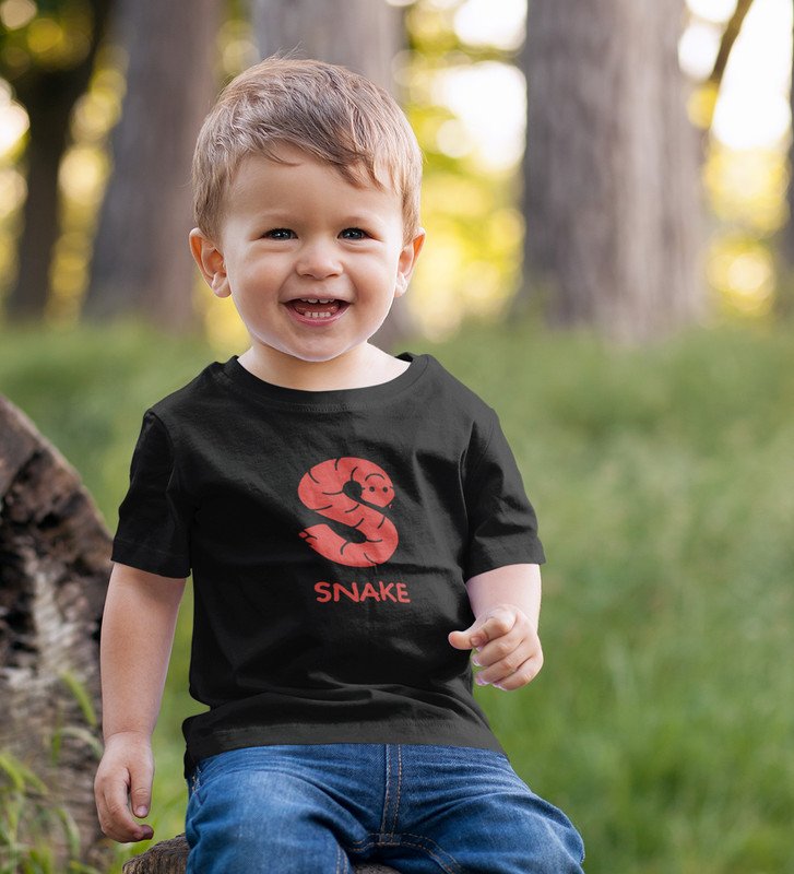 Slippery Snake, Boys Printed Crew Neck Tshirt (black)