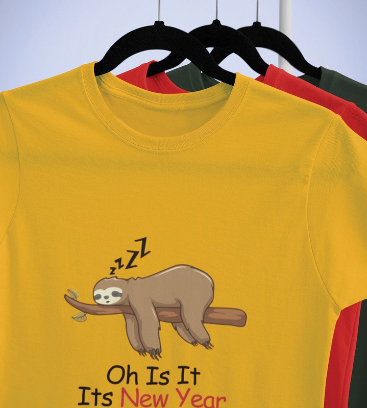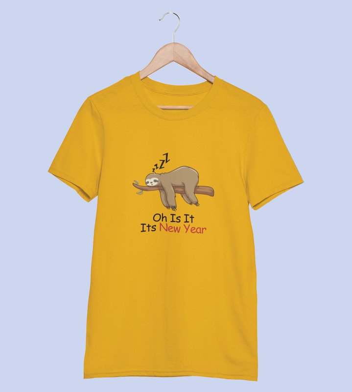 Sloth's New Year Yellow Graphic Printed T-shirt For Mens Boys