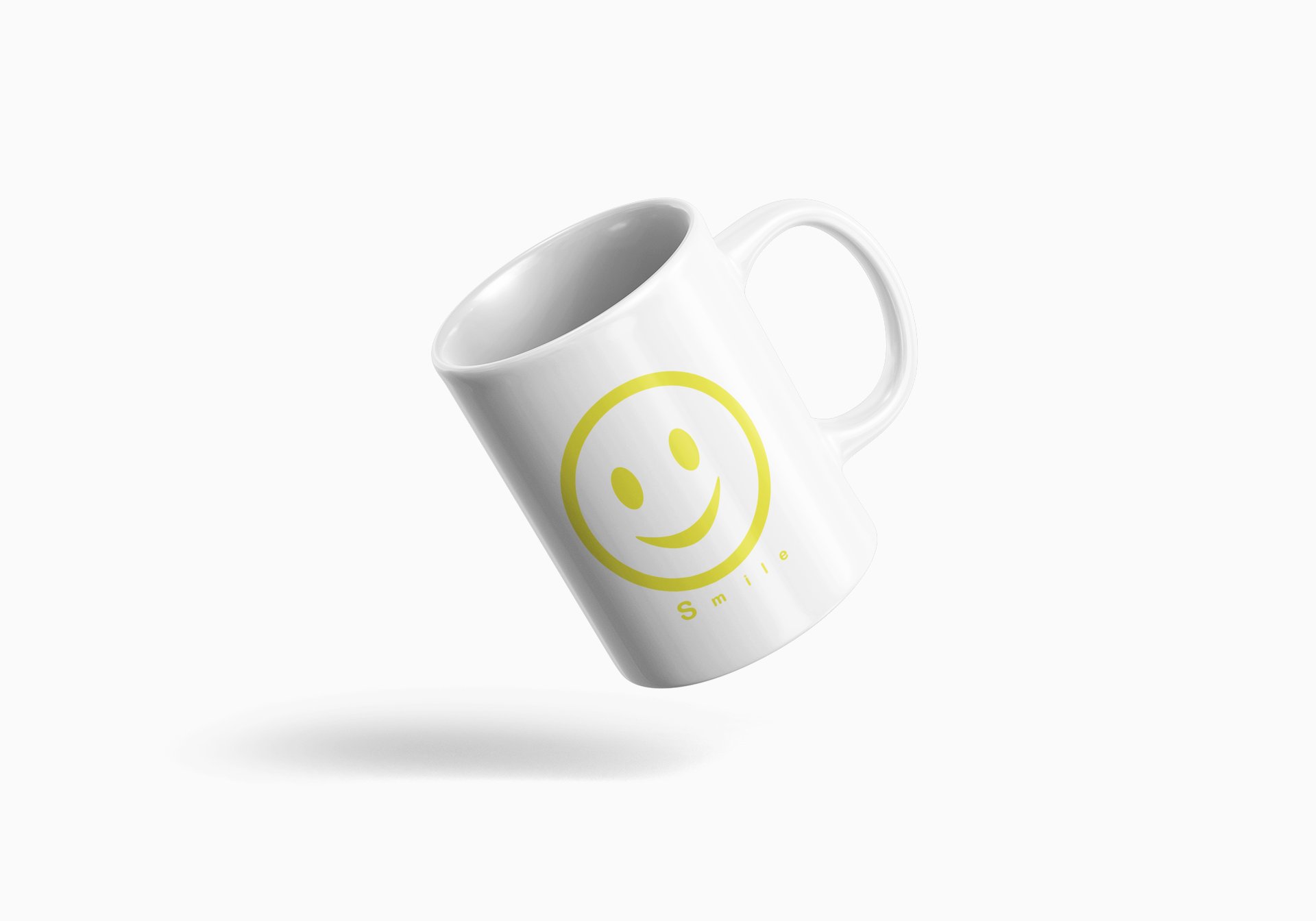 Smile Text (yellow) - emoji printed ceramic white coffee and tea mugs/ cups for emoji lover people