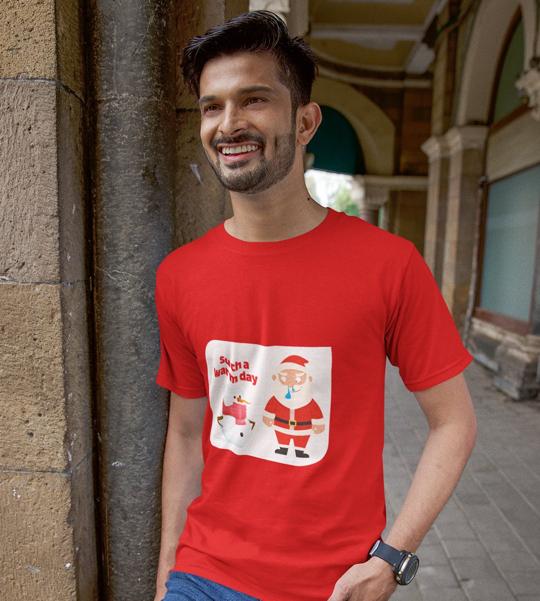 Sneezy Santa: Funny & Cute Printed T-shirt (Red) Perfect Gift For Secret Santa