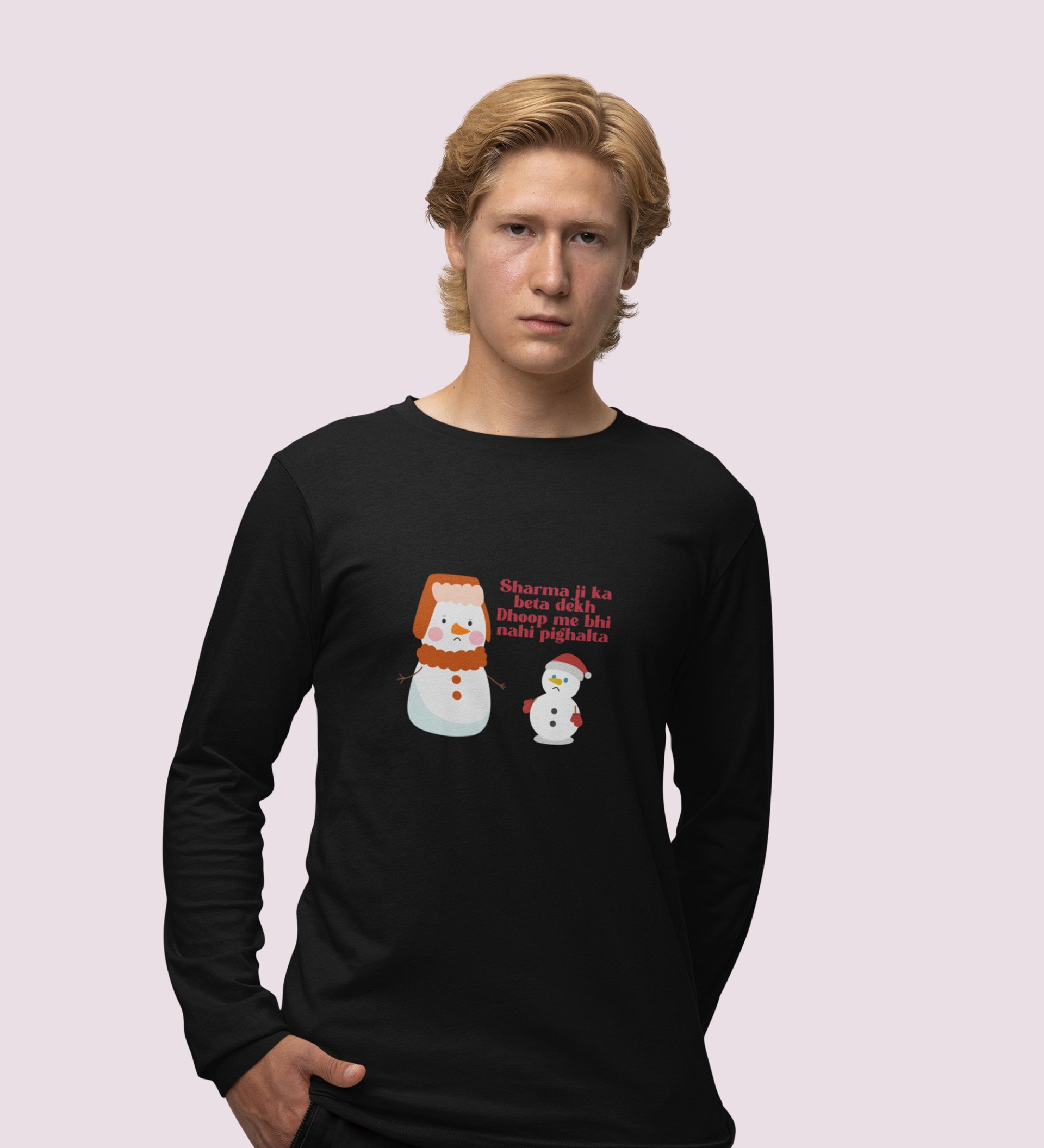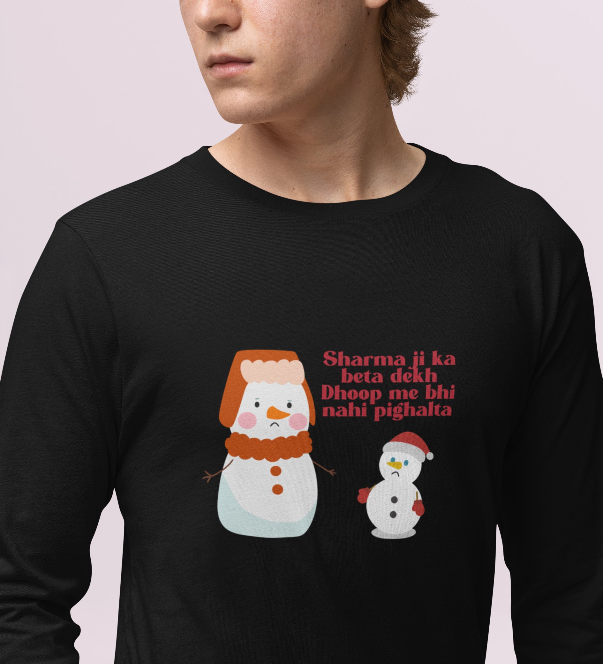 Snowman Sharmaji: Funny DesignerFull Sleeve T-shirt Black Perfect Gift For Secret Santa