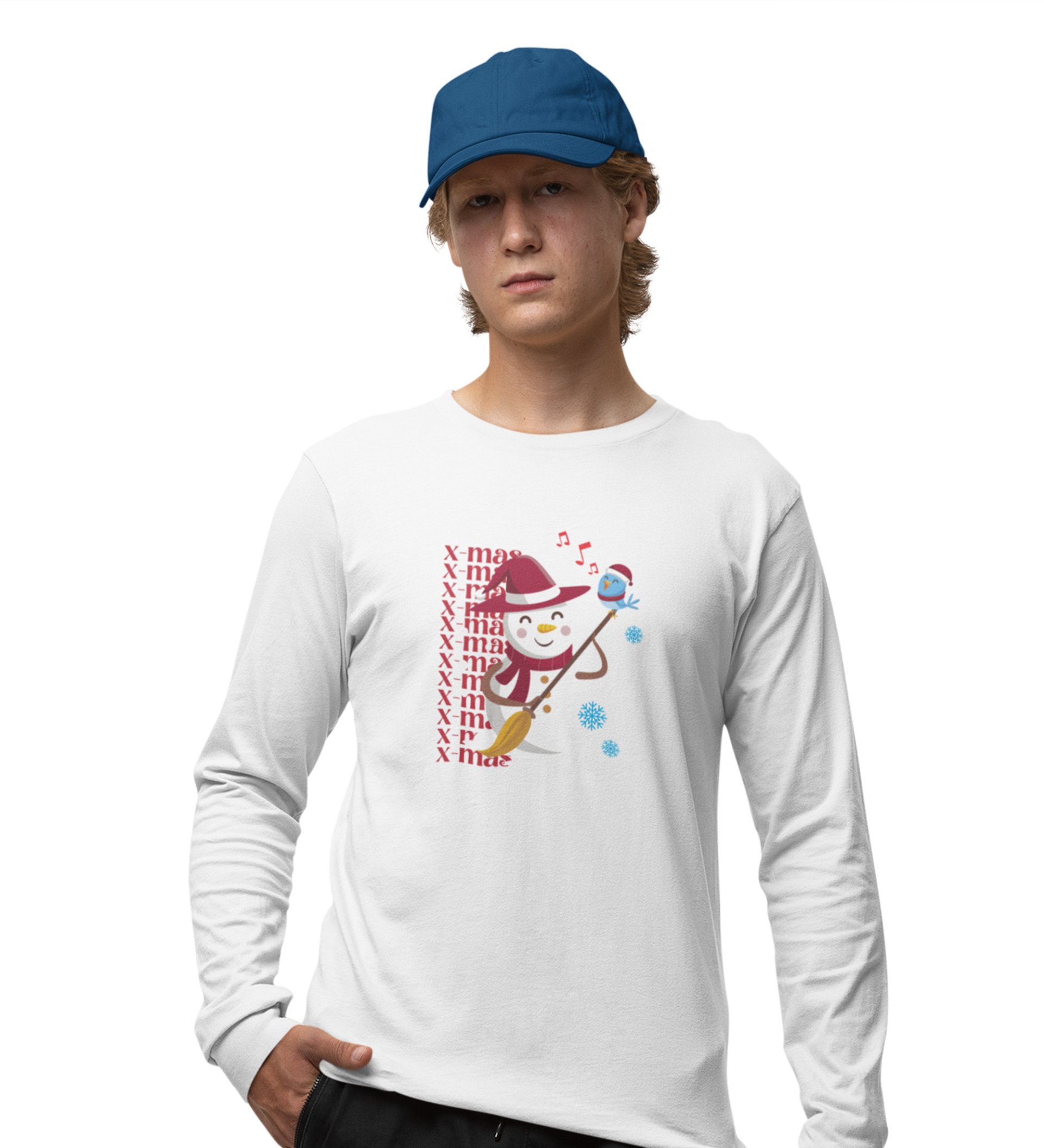 Snowman Sings: Beautifully CraftedFull Sleeve T-shirt White Perfect Gift For Secret Santa