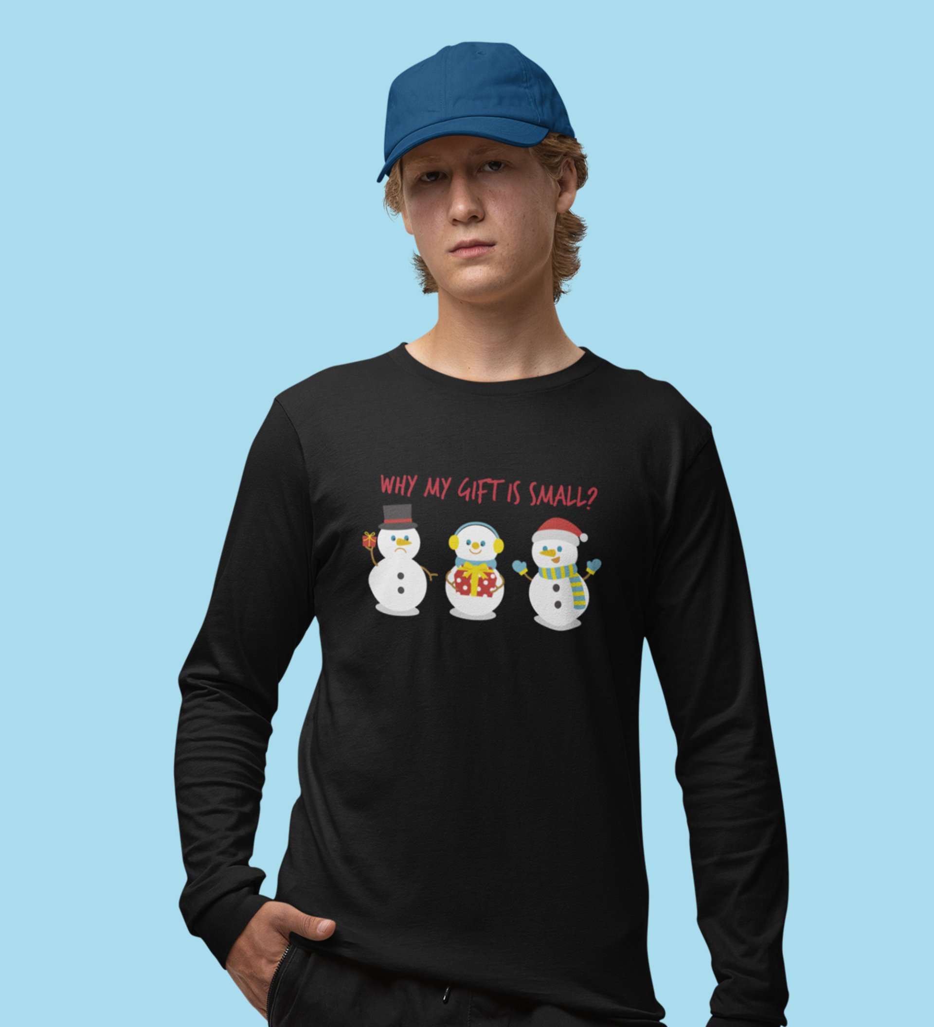 Snowman Talks: Cute DesignerFull Sleeve T-shirt Black Best Gift For Boys Girls