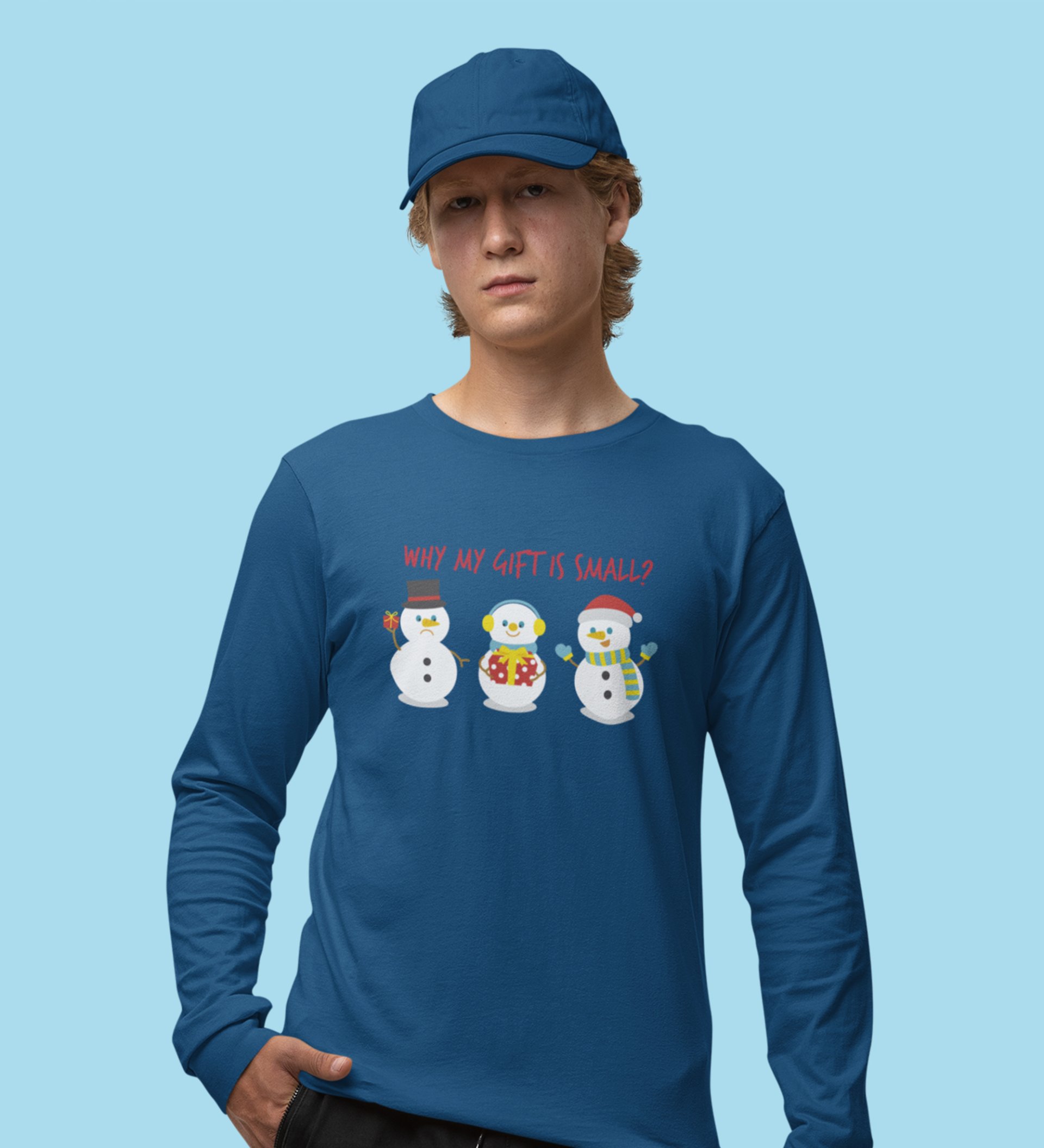 Snowman Talks: Cute DesignerFull Sleeve T-shirt Blue Best Gift For Boys Girls