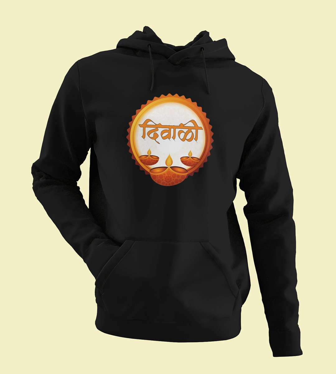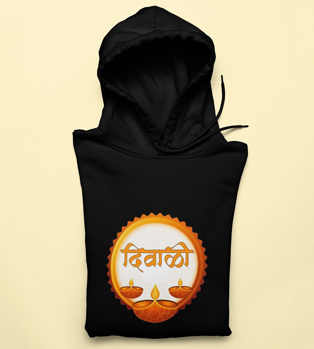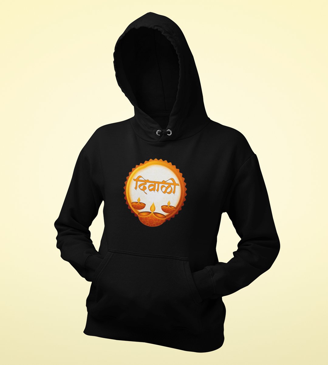 Diwali (three diyas) printed diwali themed black hoodie specially for diwali festival