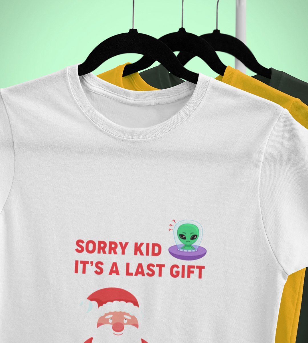 Sorry Kids Last Gift : Funny Printed T-shirt (White) Most Liked Gift For Secret Santa