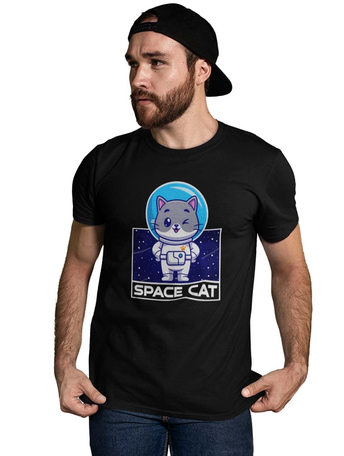Space Cat - Black printed cotton t-shirt - Comfortable and Stylish Tshirt