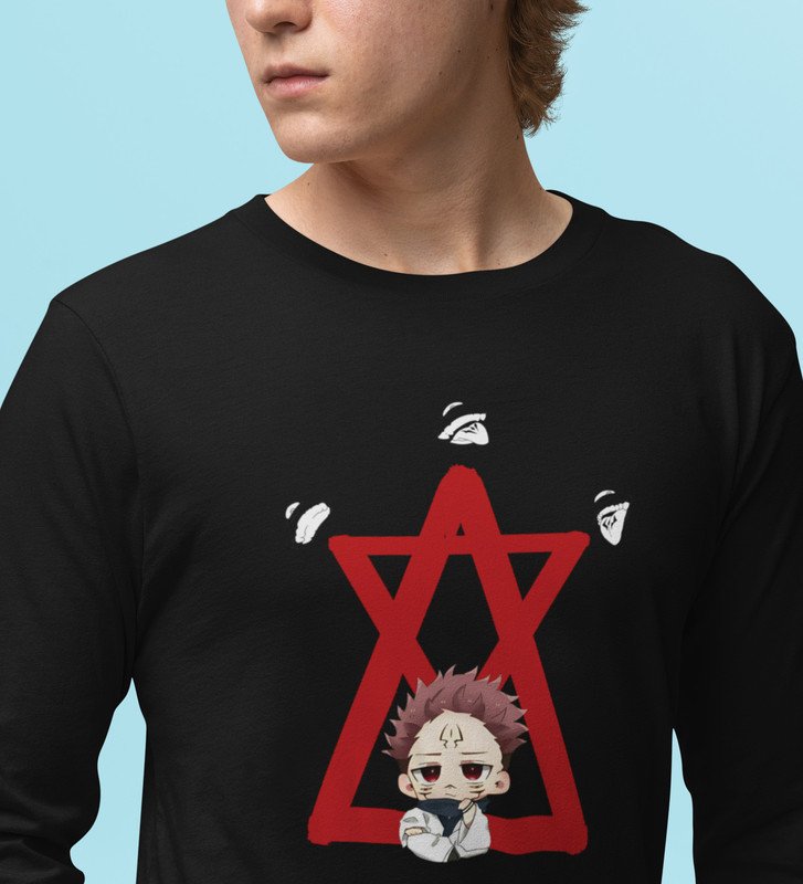 Spiritual Itadori Cotton Black Printed Full Sleeves Tshirt For Mens and Boys