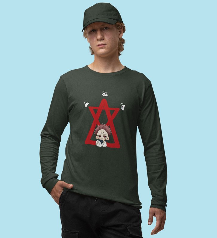 Spiritual Itadori Cotton Green Printed Full Sleeves Tshirt For Mens and Boys