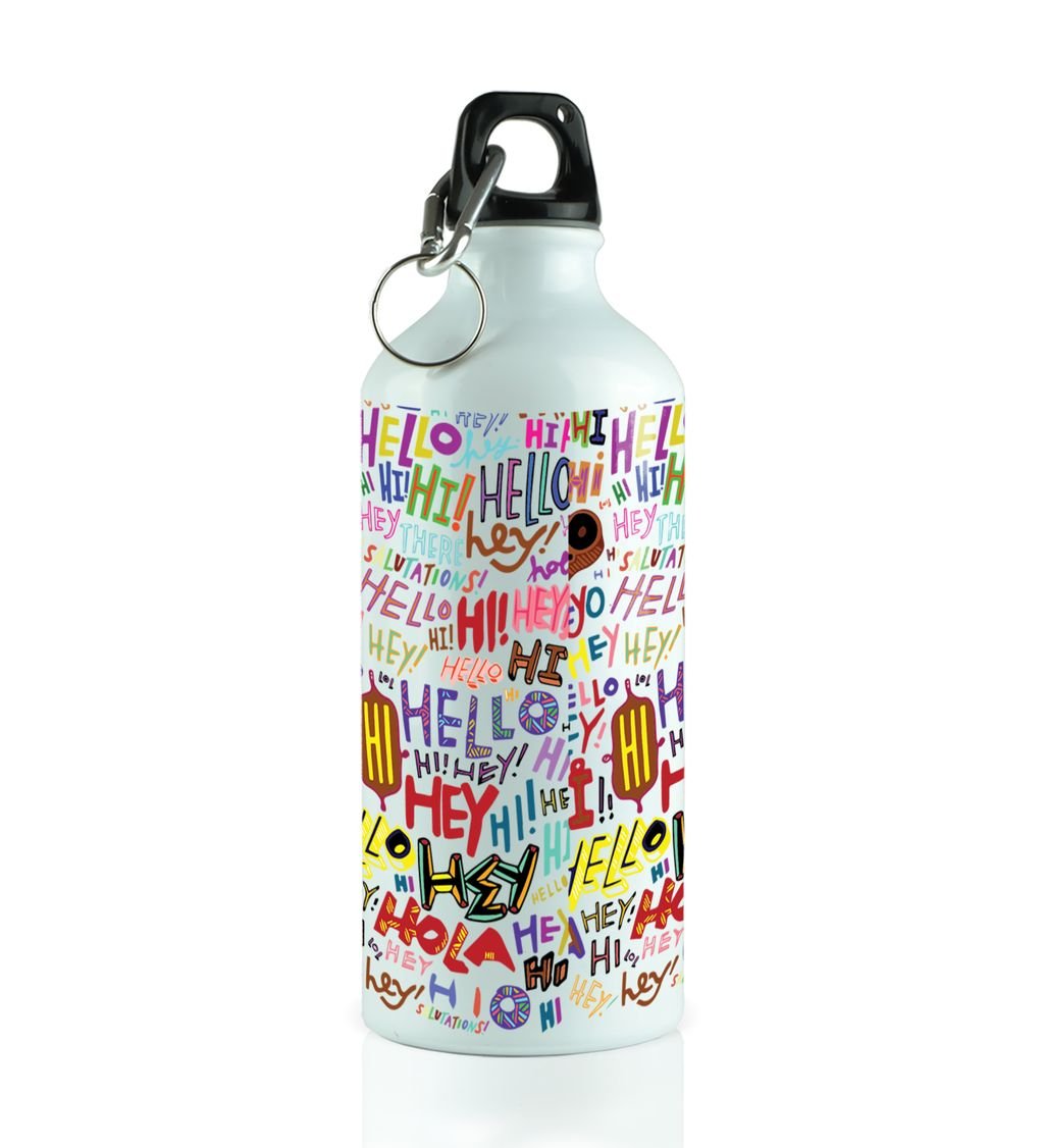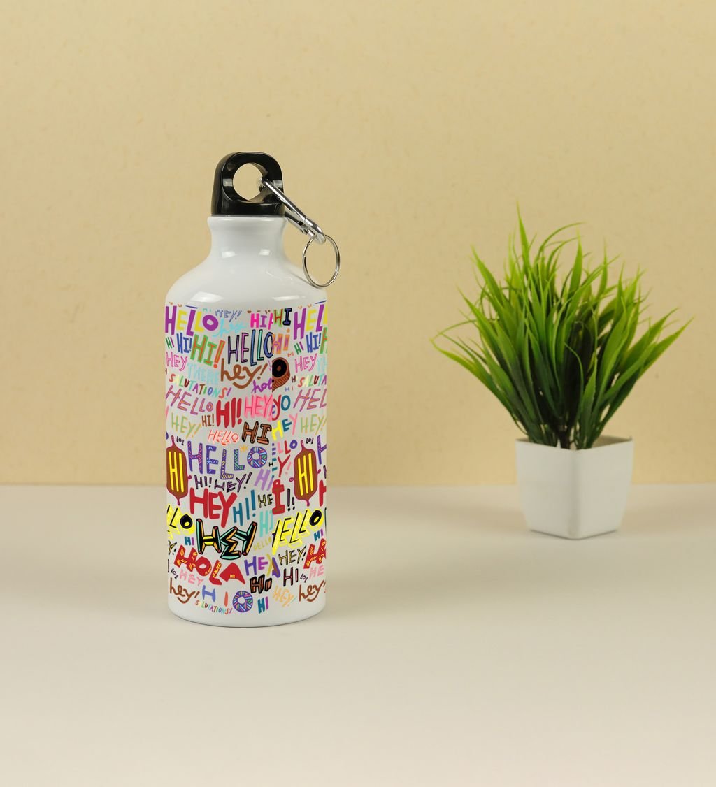 Start the Conversation with Hi, Hey, Hello Typography on Aluminium Water Bottle 600ml
