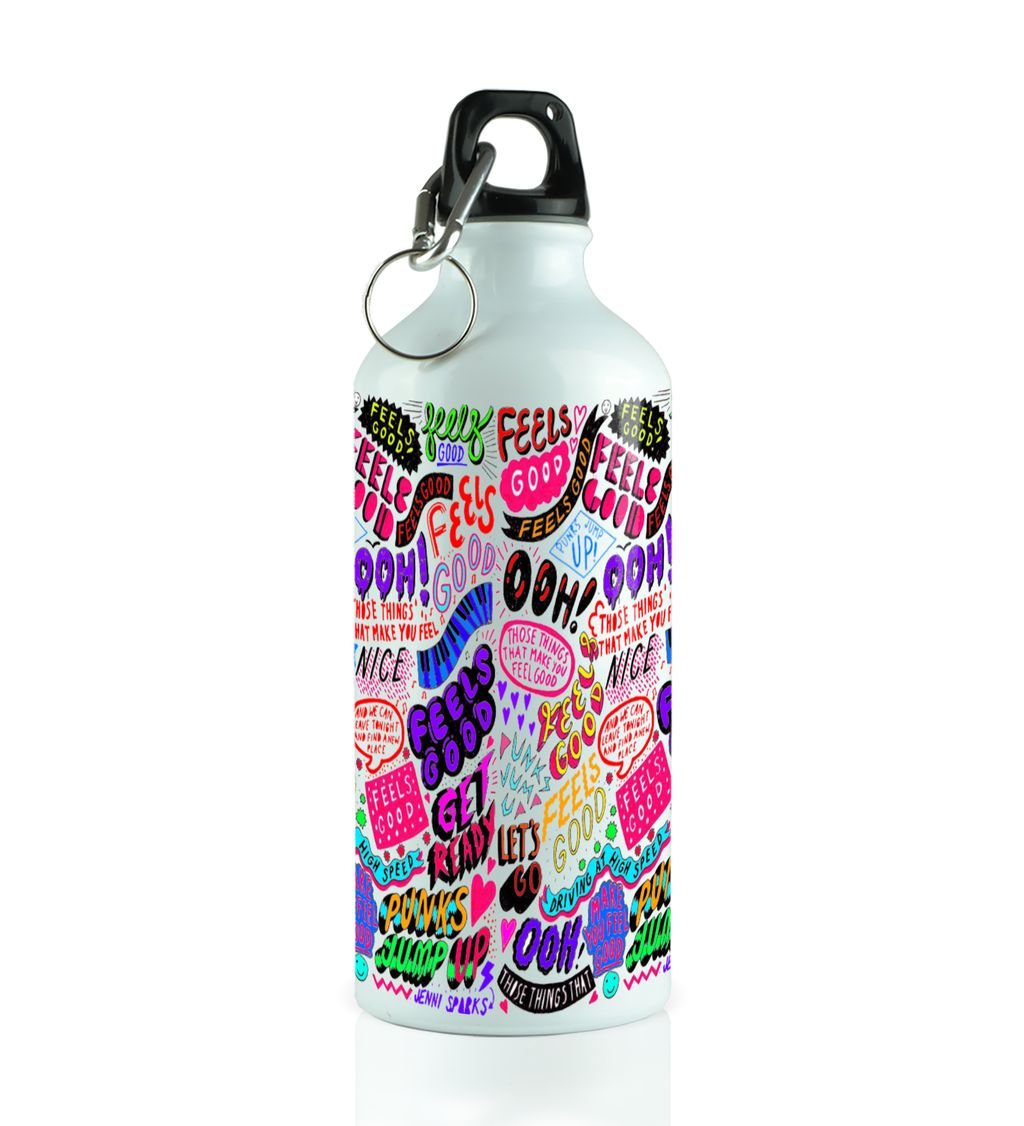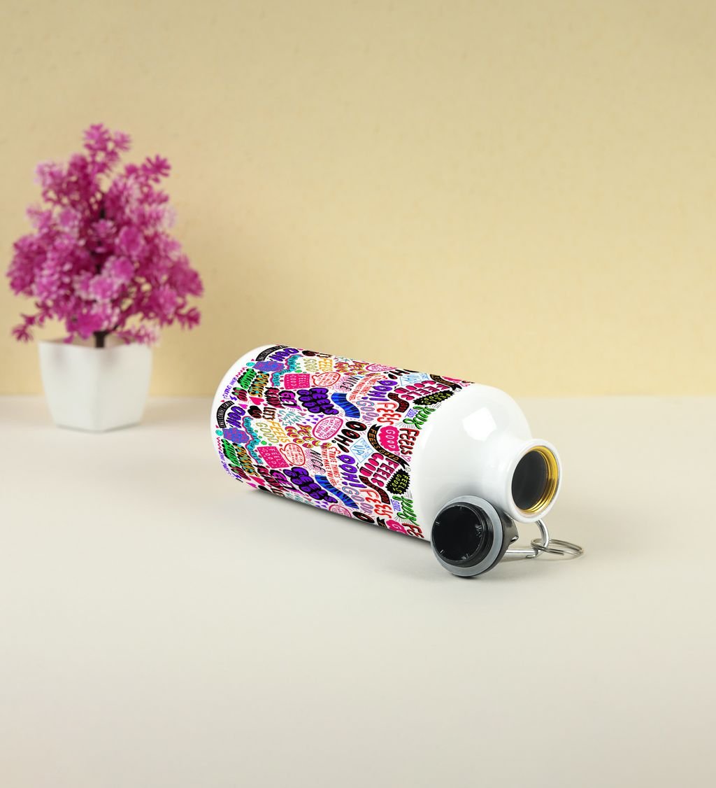 Stay Cheerful with Colorful Words and Doodle Art on Aluminium Water Bottle 600ml