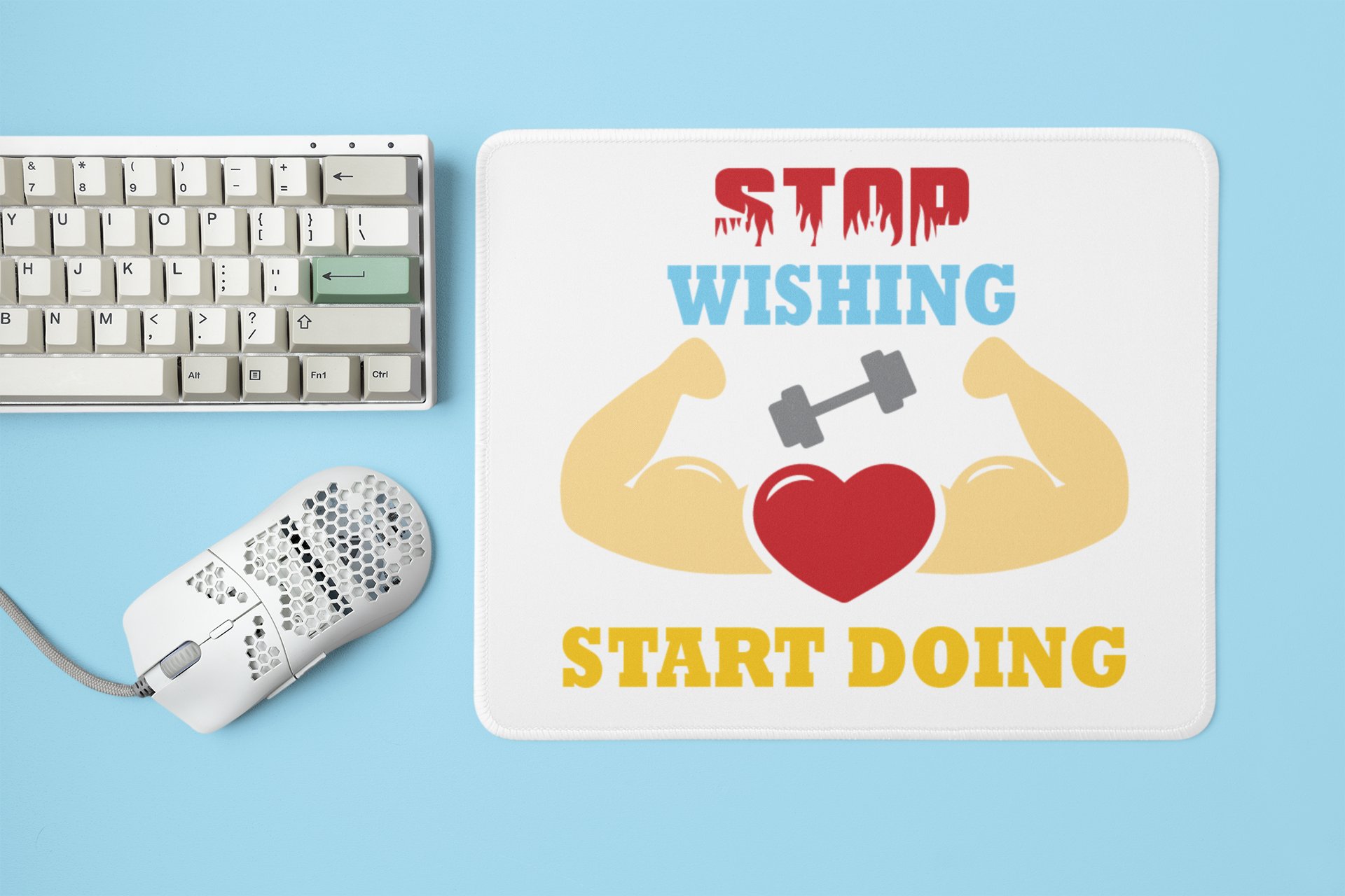 Stop Wishing, Start Doing, (BG Red, White, Yellow) - Printed Mousepads For Gym Lovers