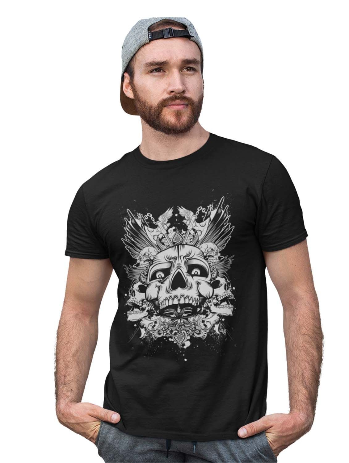 The Strange Craniums Black Round Neck Cotton Half Sleeved T-Shirt with Printed Graphics
