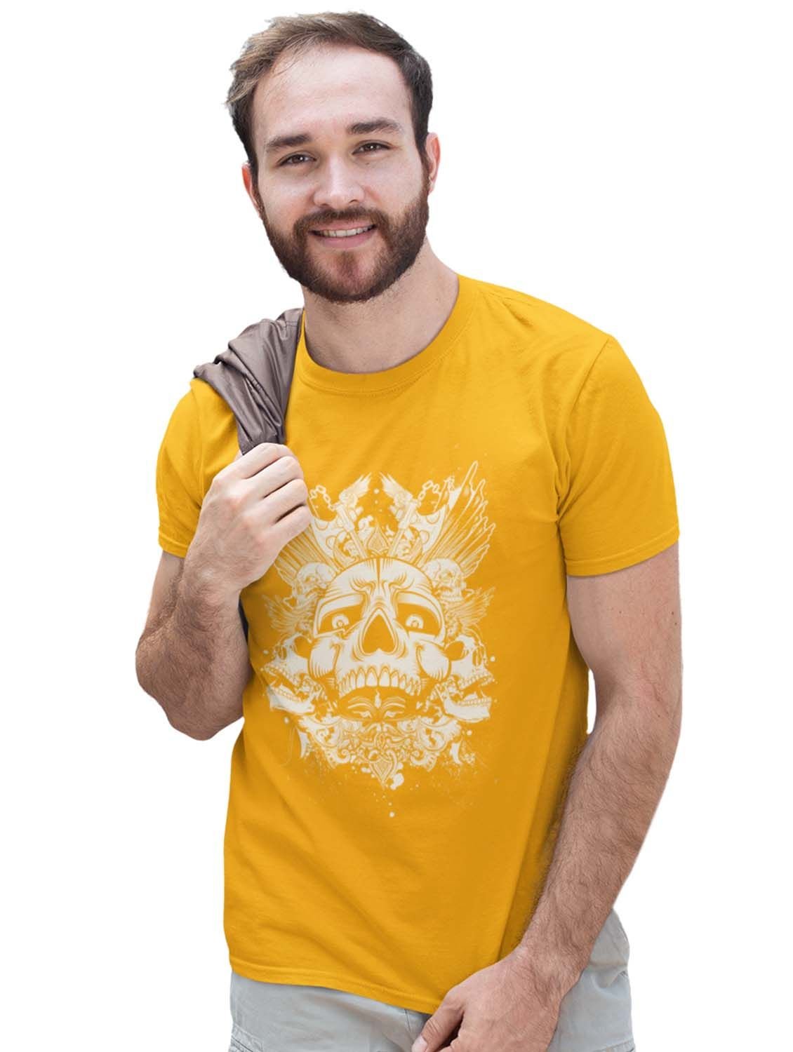The Strange Craniums Yellow Round Neck Cotton Half Sleeved T-Shirt with Printed Graphics