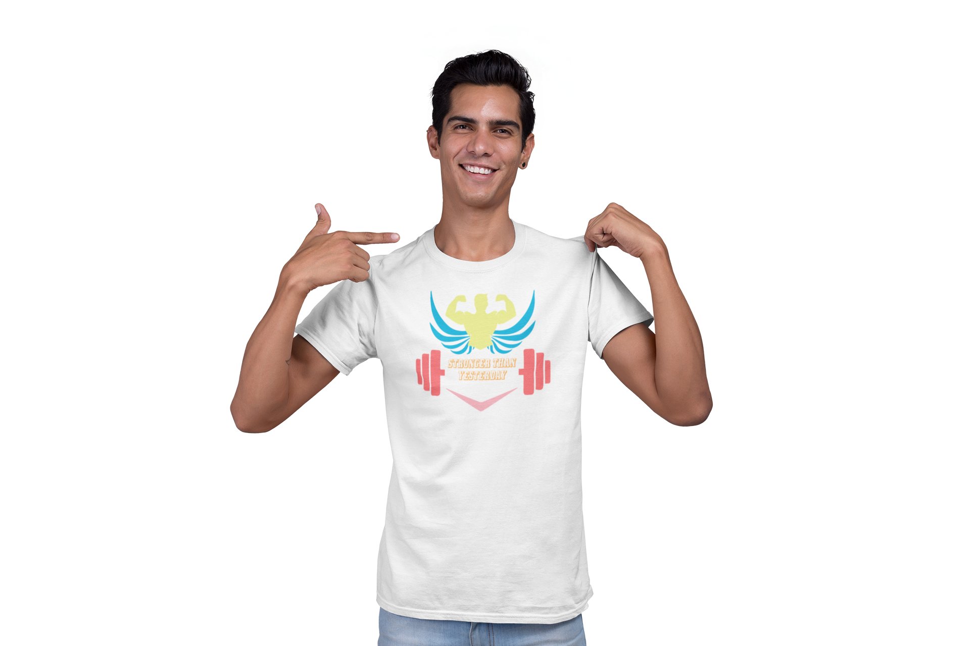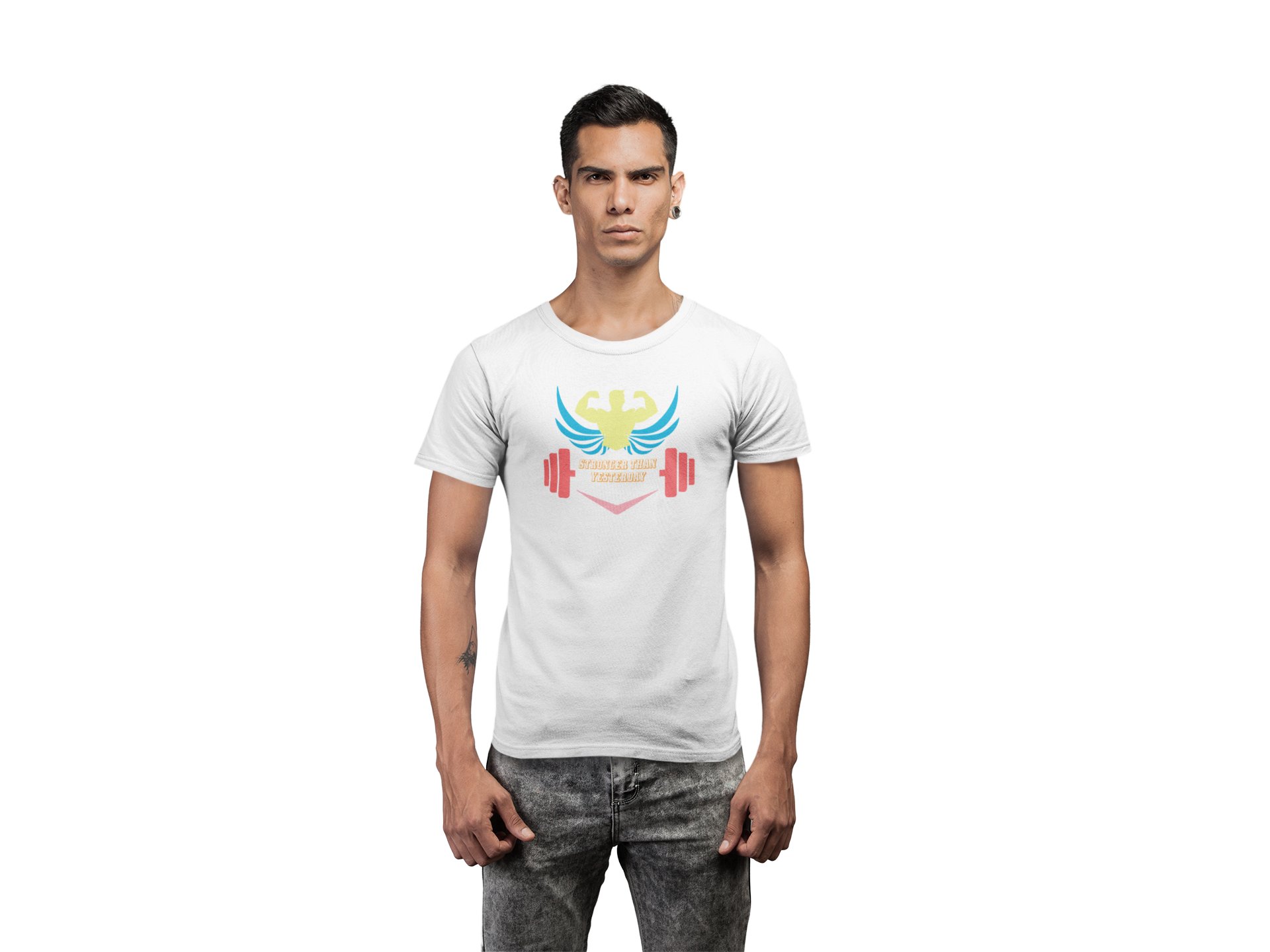 Stronger Than Yesterday, (BG White, Red and Yellow), Round Neck Gym Tshirt (White Tshirt) - Clothes for Gym Lovers - Suitable for Gym Going Person - Foremost Gifting Material for Your Friends and Close Ones