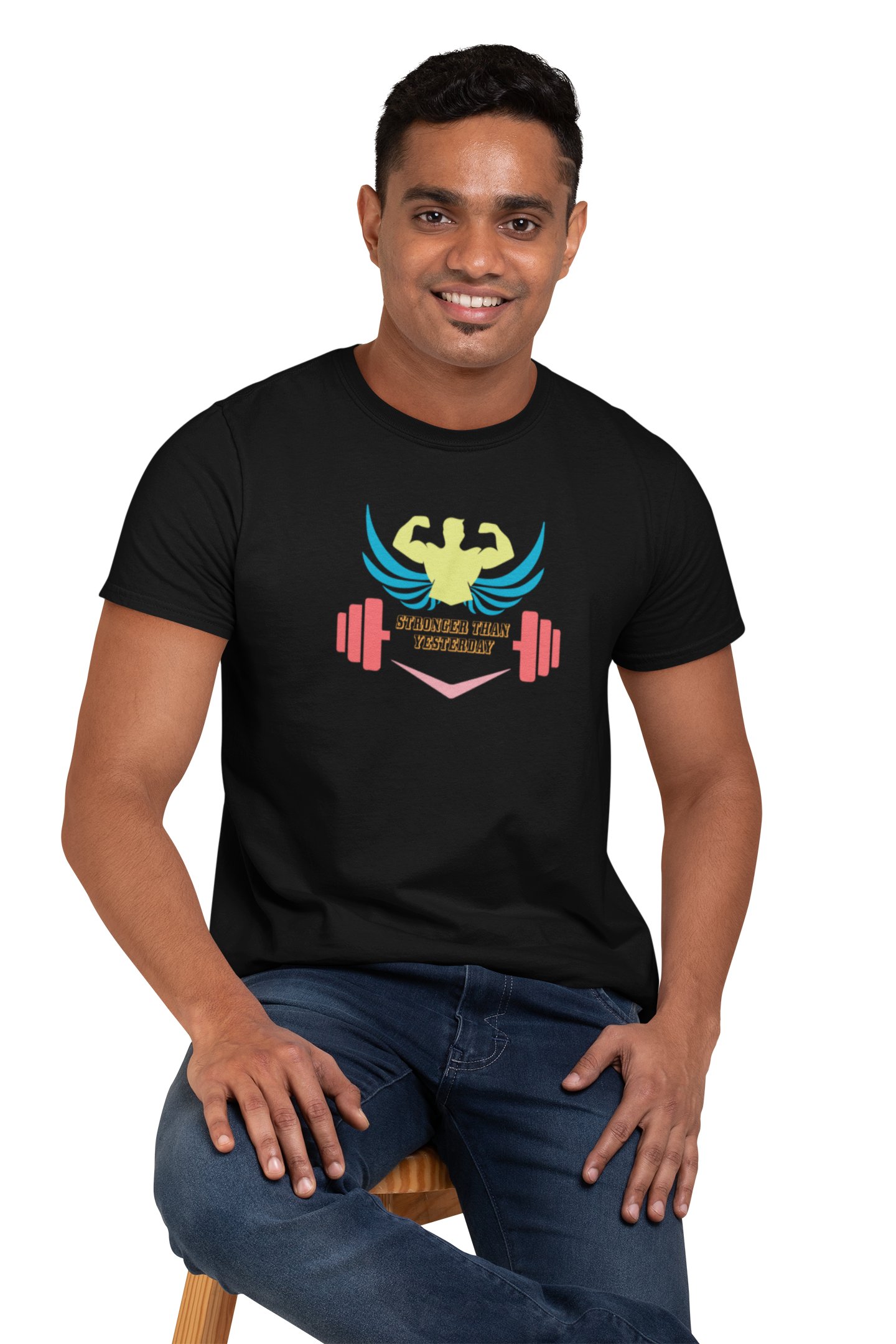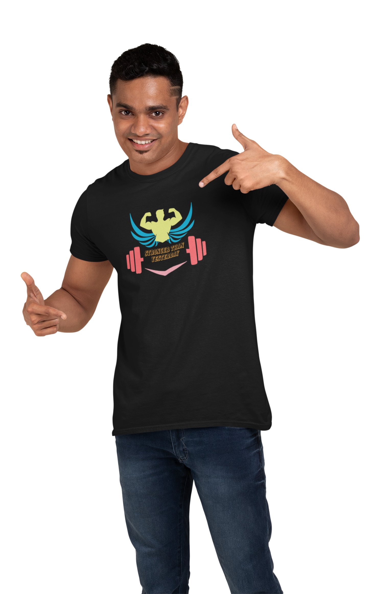 Stronger Than Yesterday, Round Neck Gym Tshirt (White Tshirt) - Clothes for Gym Lovers - Suitable for Gym Going Person - Foremost Gifting Material for Your Friends and Close Ones