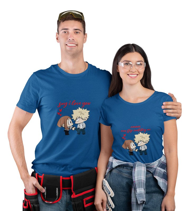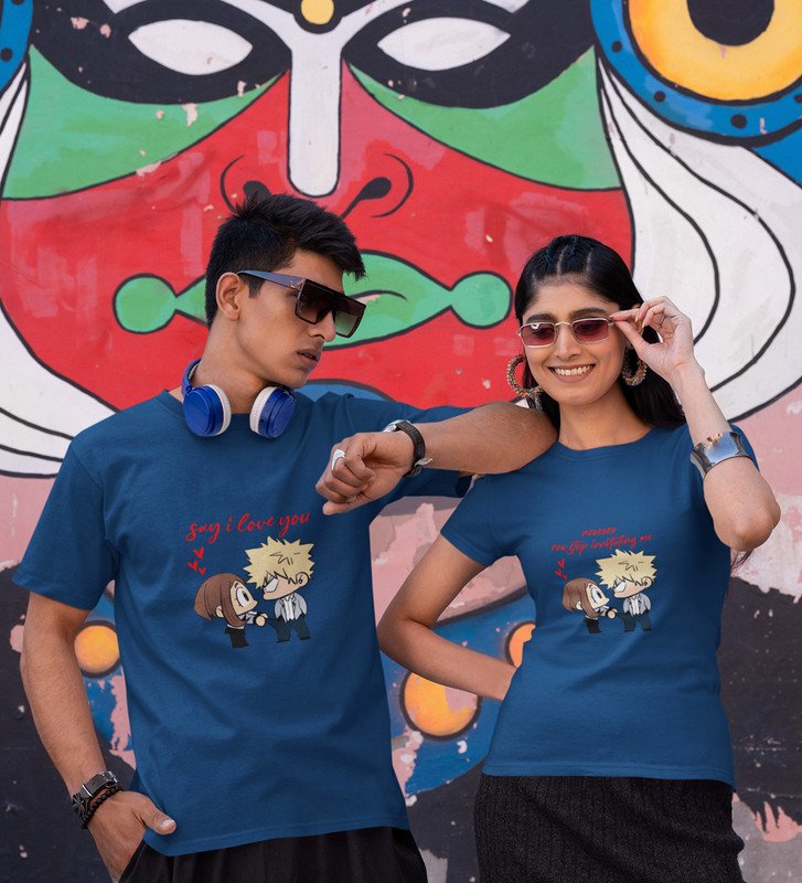 Stubborn Girlfriend Cute Printed (blue) T-shirts For Couples