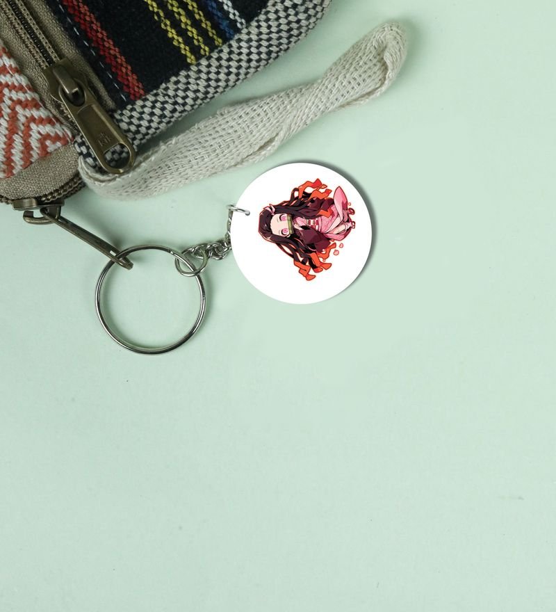 Stylish Anime Girl Design Printed Round Keychain Pack of 2